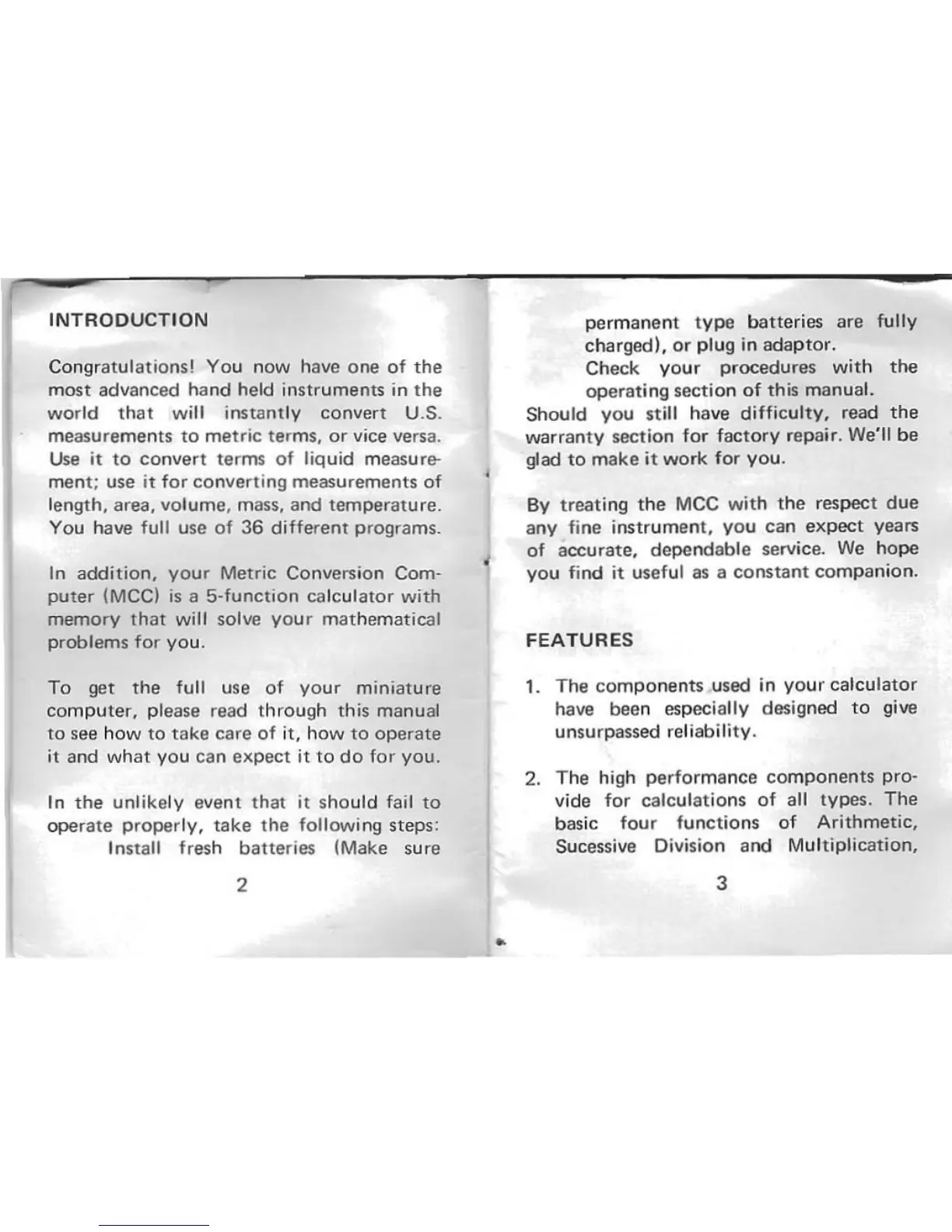 SIC MCC - Introduction to the Metric Conversion Computer; Component Reliability; Calculation and Conversion Capabilities