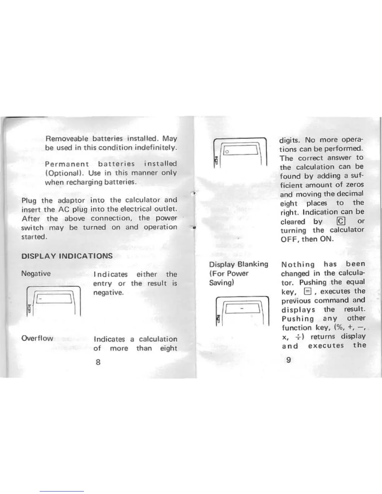 SIC MCC - Display Indications Explained; Negative and Overflow Indicators; Display Blanking for Power Saving