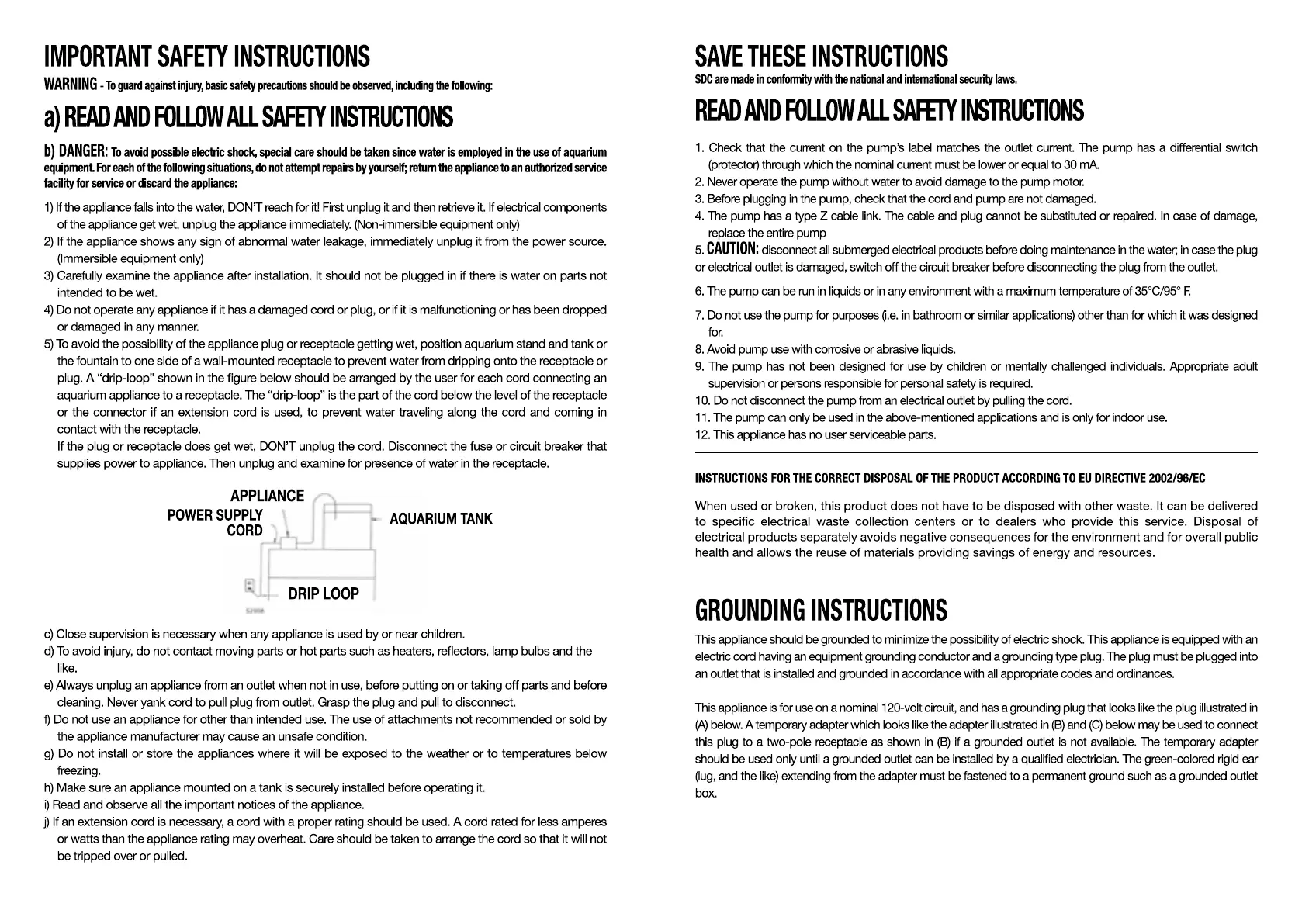 Sicce Space Eko 200 - General Safety Instructions; Read and Follow All Safety Instructions; Electrical Shock and Water Hazard Prevention; Safe Usage and Handling Guidelines