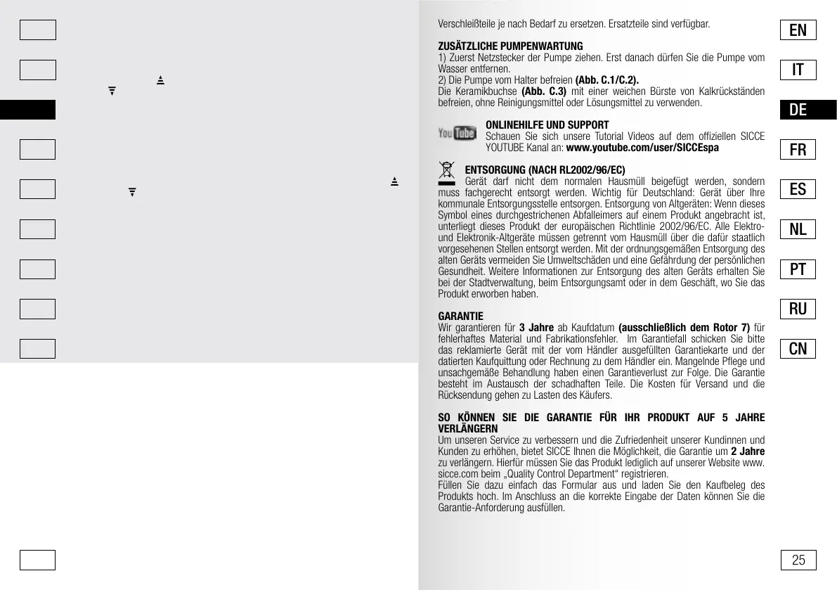Kunden zu erhöhen, bietet SICCE Ihnen die Möglichkeit, die Garantie um 2 Jahre