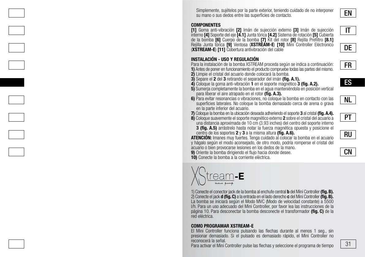 ATENCIÓN: Imanes muy fuertes. Tenga cuidado al colocar la bomba en el acuario