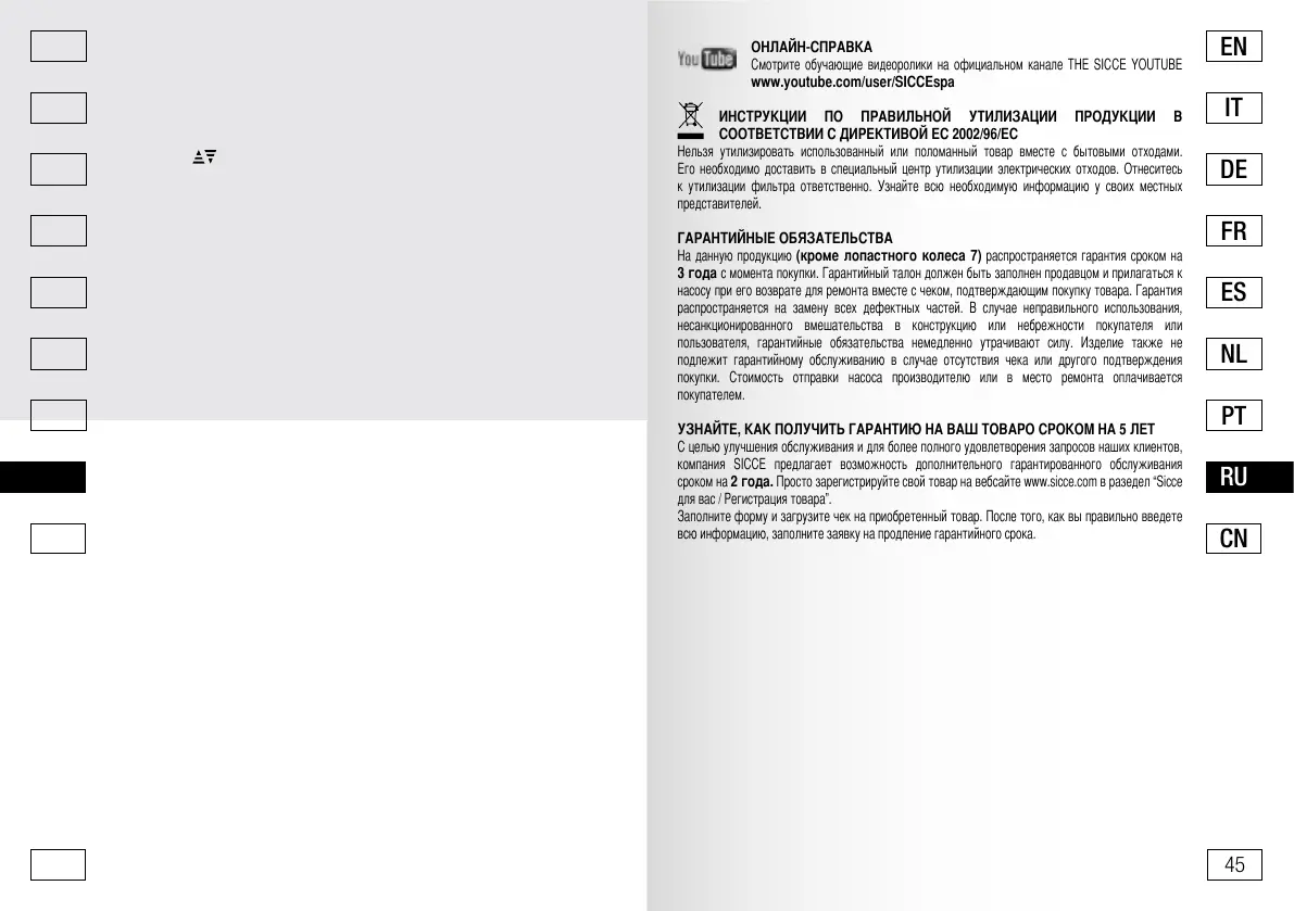 насосу при его возврате для ремонта вместе с чеком, подтверждающим покупку товара. Гарантия