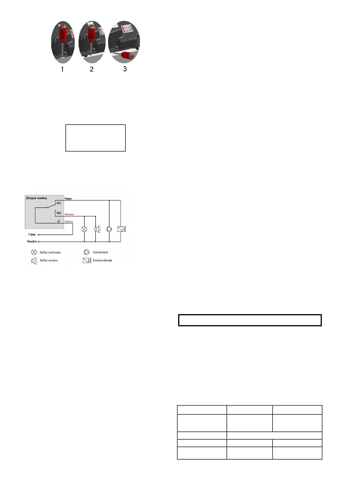• El motor de la bomba está dotado de un cortocircuito térmico ajustado