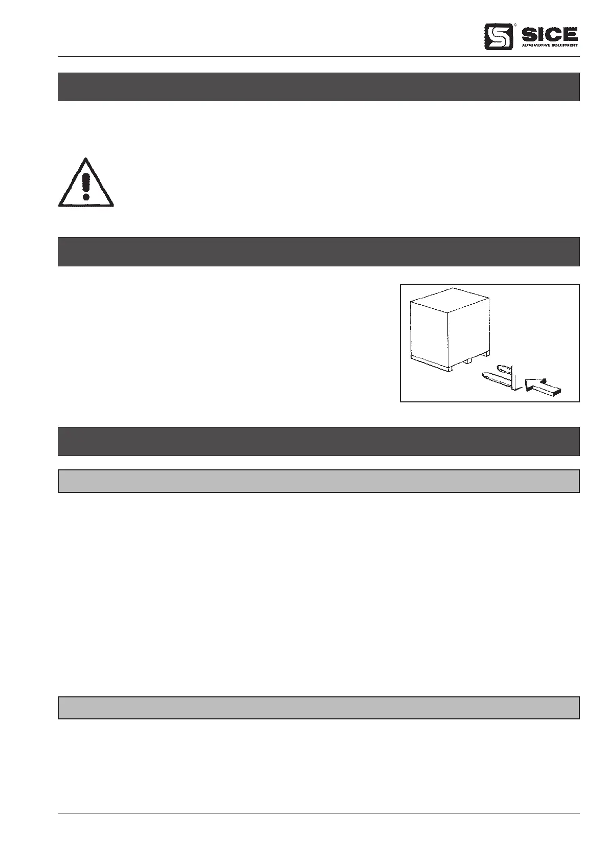 The machine must be handled with a fork-lift truck with the forks positioned as shown in