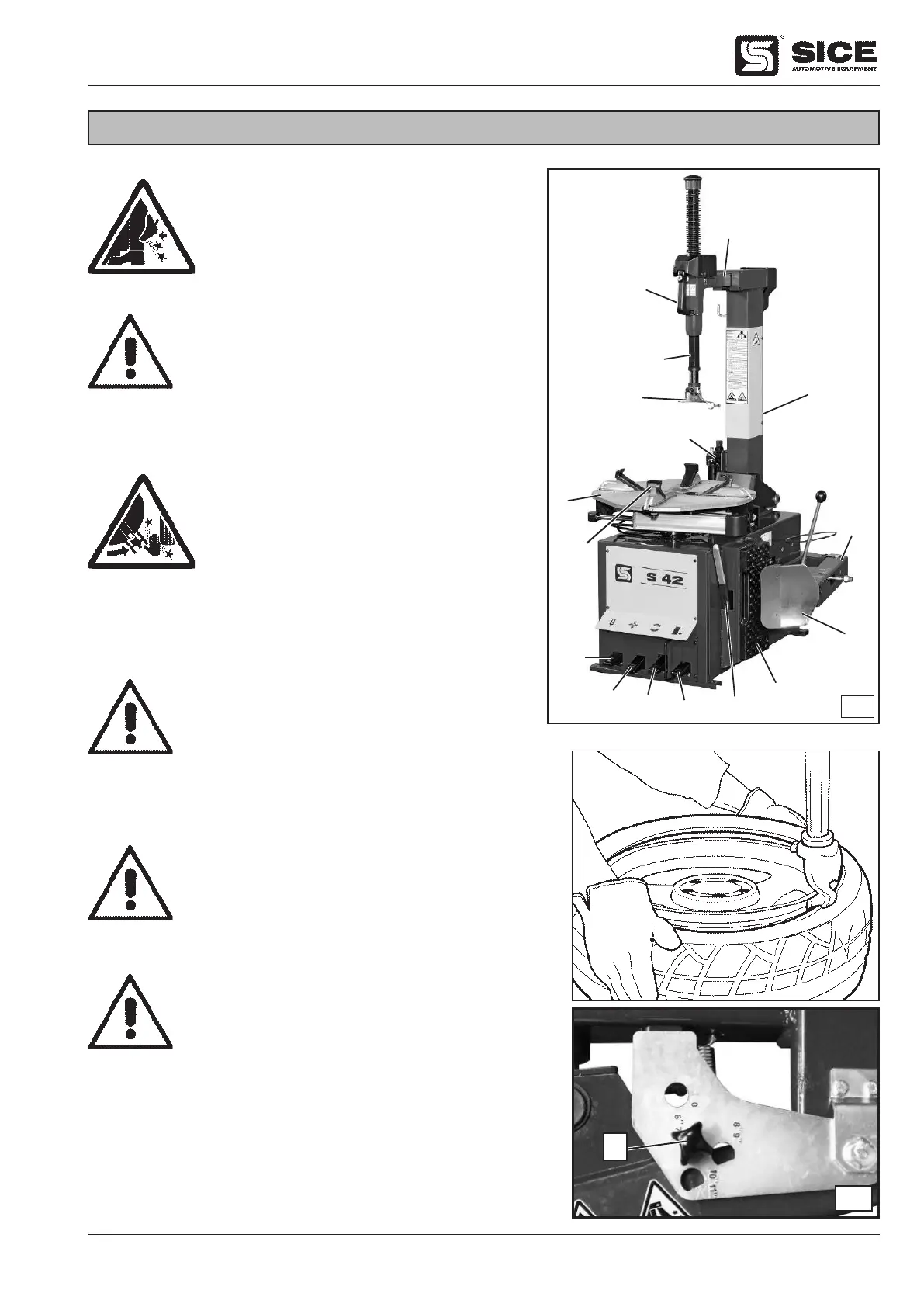 WARNING! Position the blade as to operate the side of