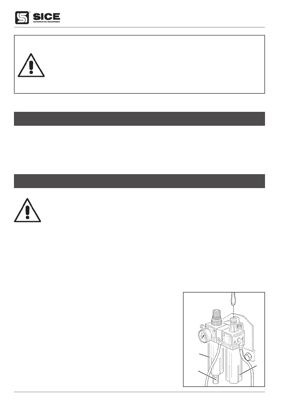 Using accessories that are not original can affect the safety of the tyre changer and immediately cause the SICE warranty to become