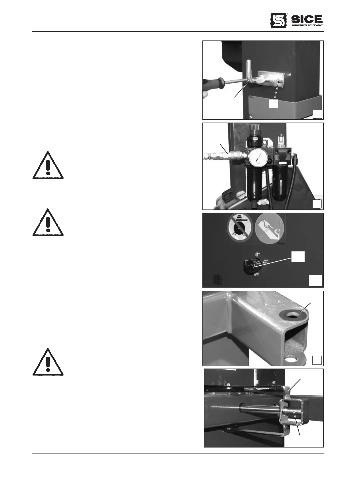 2) Das Reifenmontiergerät mit dem serienmäßig gelieferten Gewindeanschlussstutzen
