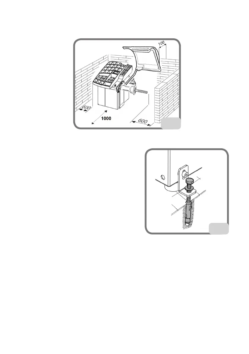 - Vincolare la macchina a terra fissando le staffe a L ai Fischer utilizzando le relative viti