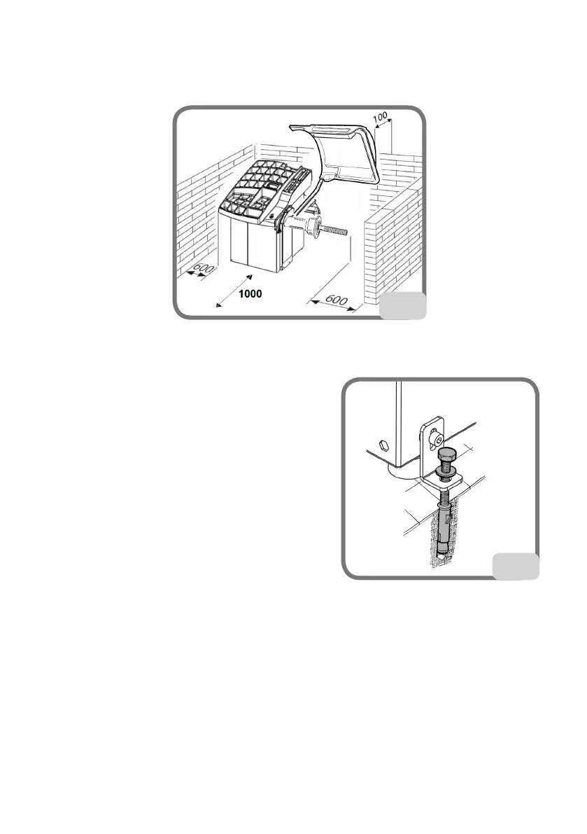 - Ancrer la machine au sol en fixant les brides en L aux Fischer avec les vis et les
