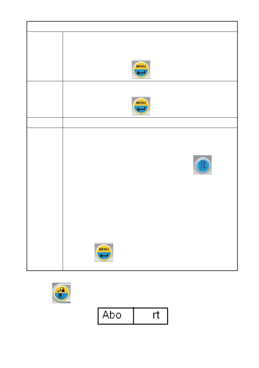 die Taste wählt; die Displays zeigen die Meldung des vorzeitigen Beendens an: