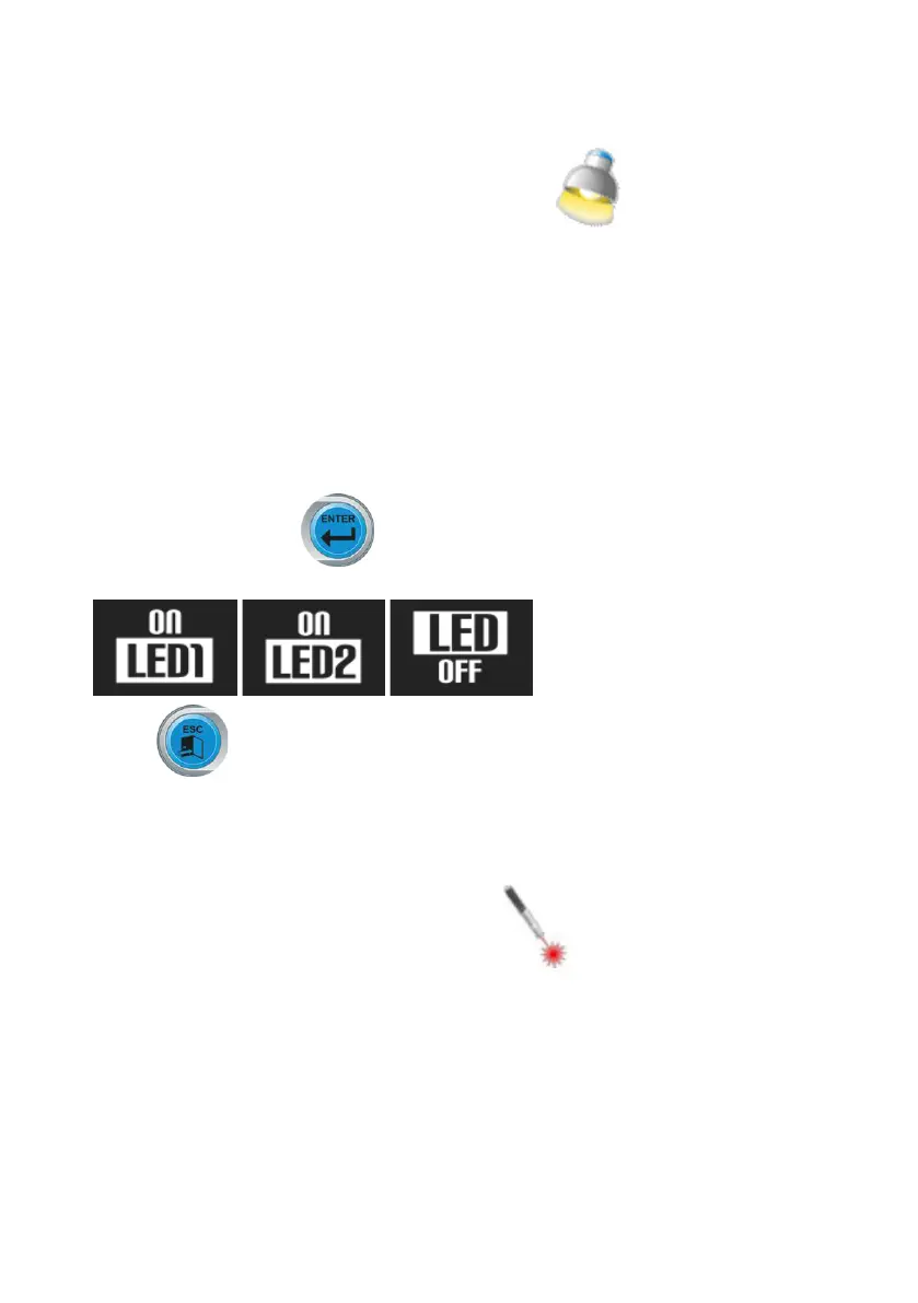 - Two icons will appear on the display that represent the possible LASER modes, as