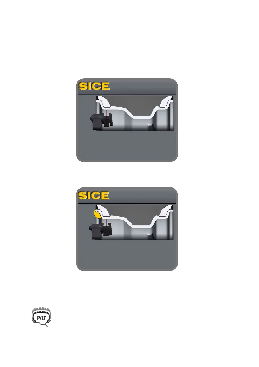 - Maintenir le bras en contact avec la jante tant que la machine n’a pas saisi les valeurs