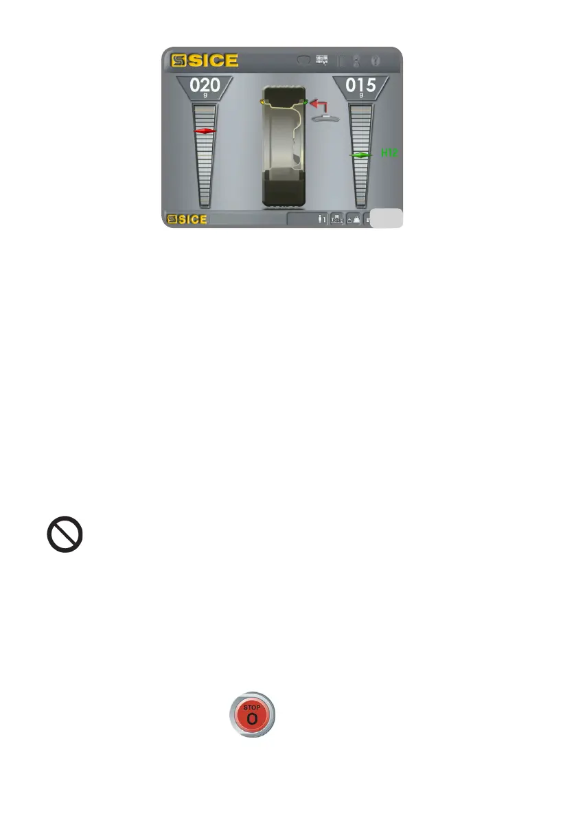 3. Attendre l’arrêt automatique de la roue et l'affichage des valeurs de balourd calculés.