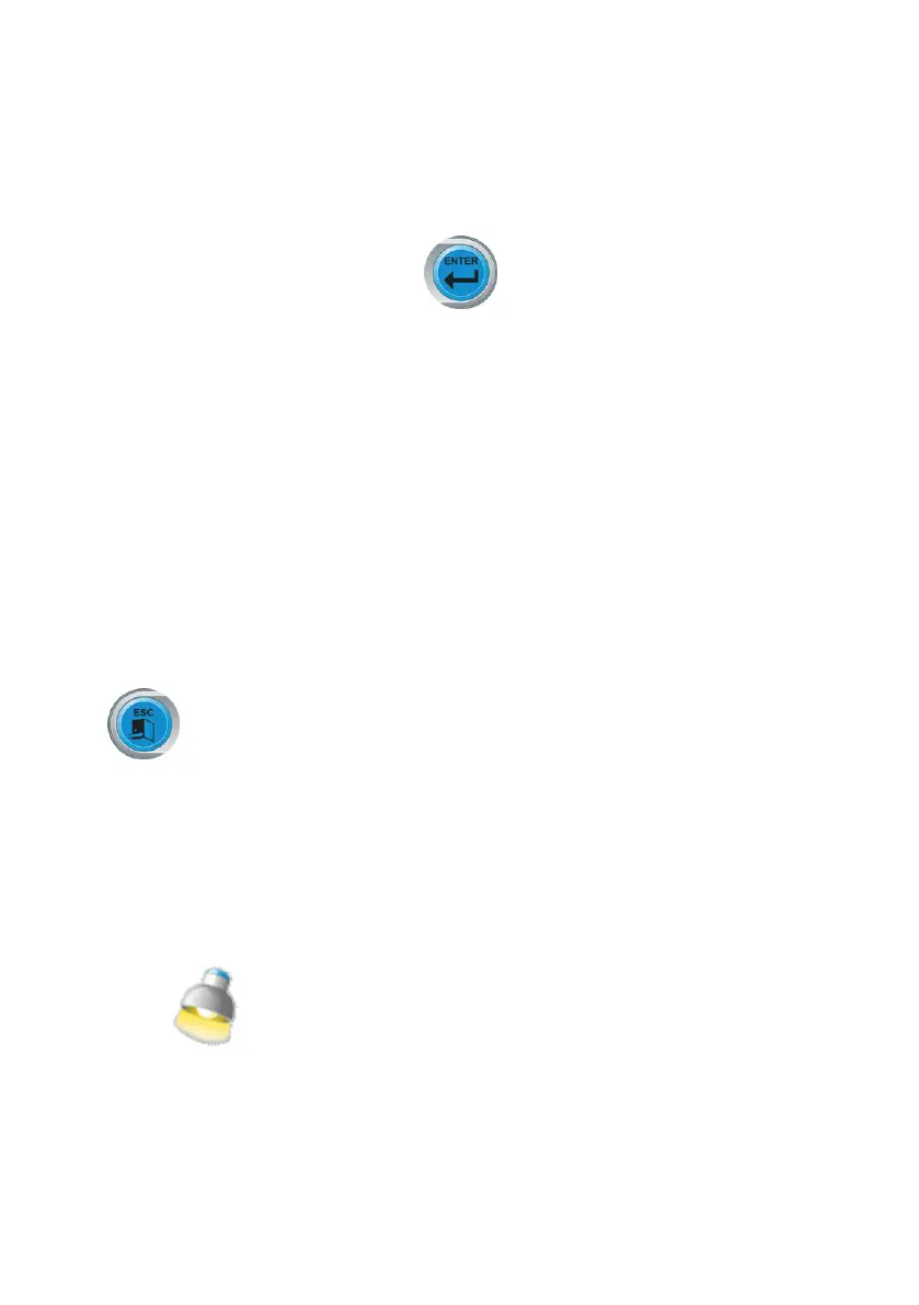 - Auf dem Bildschirm erscheinen die drei Ikonen, die die möglichen Betriebsarten der Beleuch-