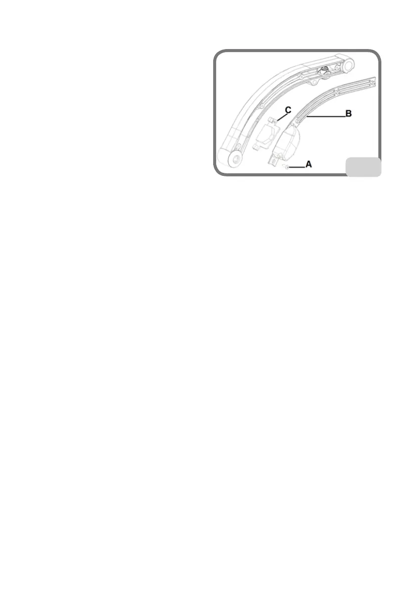 - Entfernen Sie die vier Schrauben im Hebel (A,
