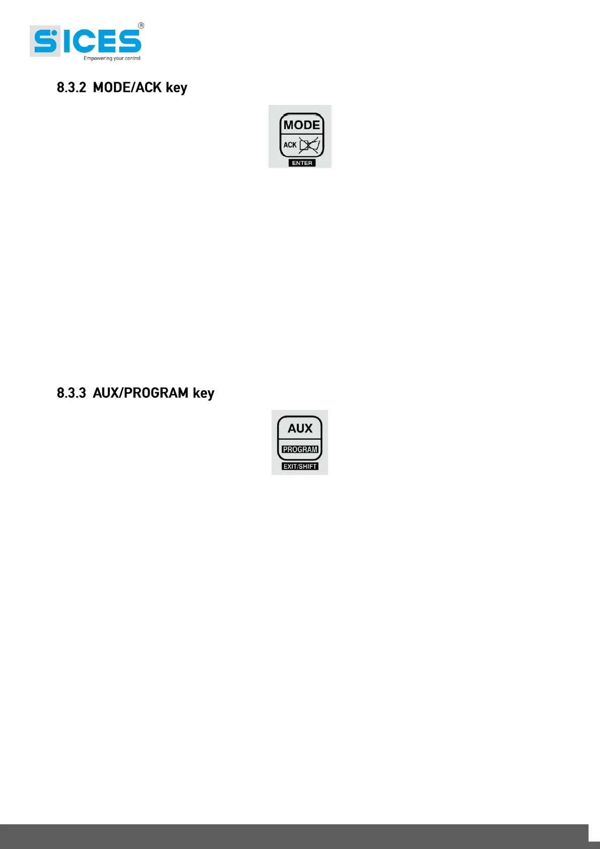 If the key is pressed together with the “MODE/ACK” key, it allows the manual regulation of the