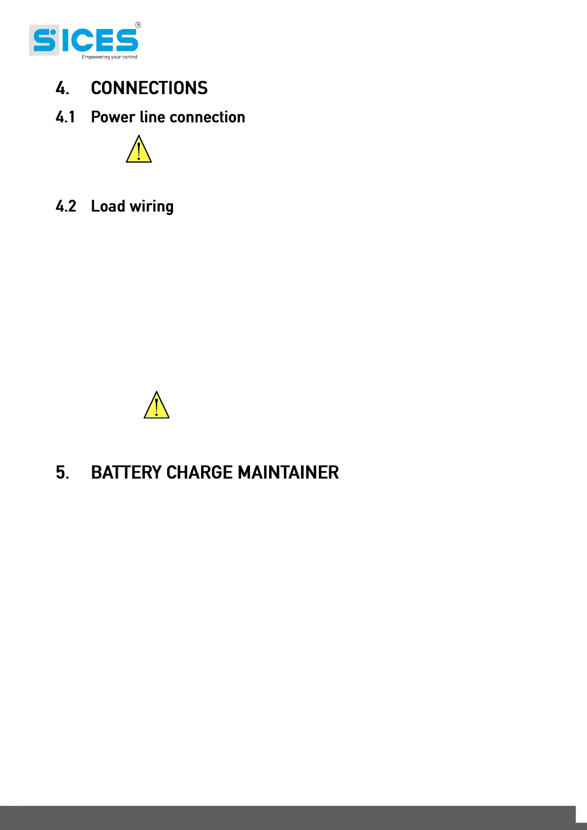 Load wiring must be made on the most right contactors marked as “KG” (a label “LOAD