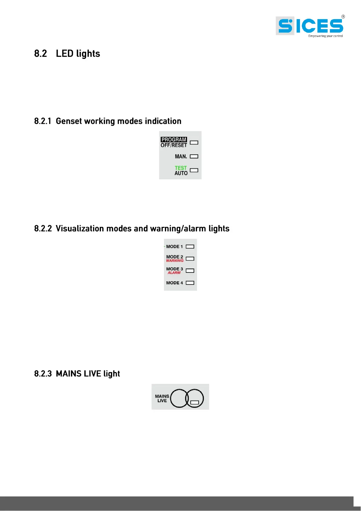 Furthermore, the light signals also the genset inhibition status (see par. 11.6). If the