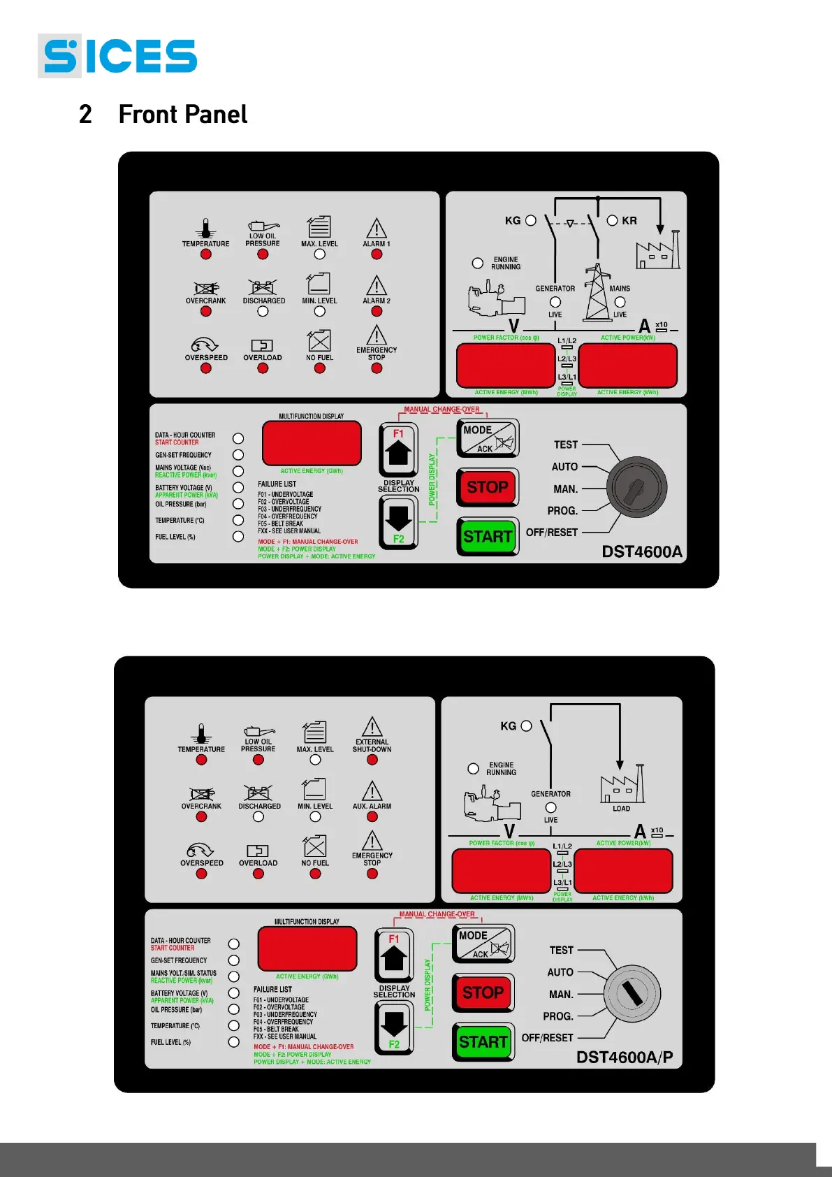 Sices DST4600A - Front Panel Description; Operating and Functions Controls Area