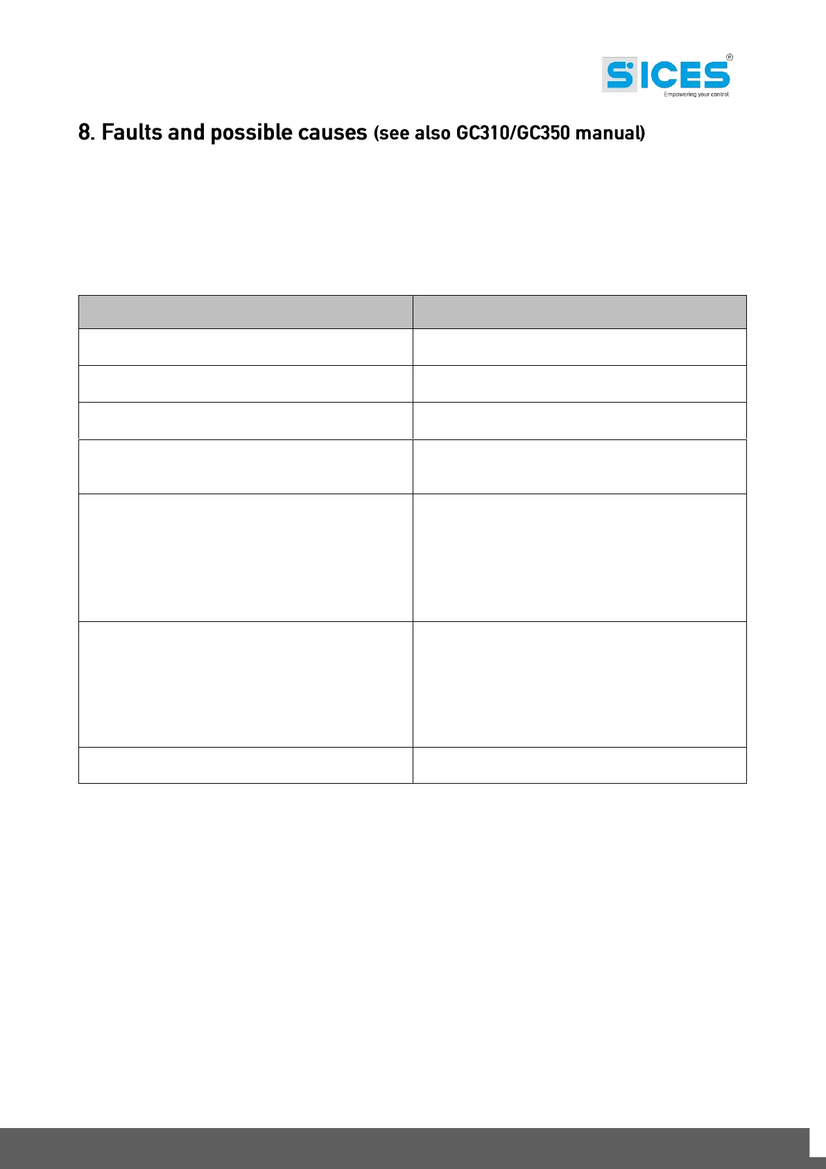 The table below shows the problems that could affect the panel. These problems can also be