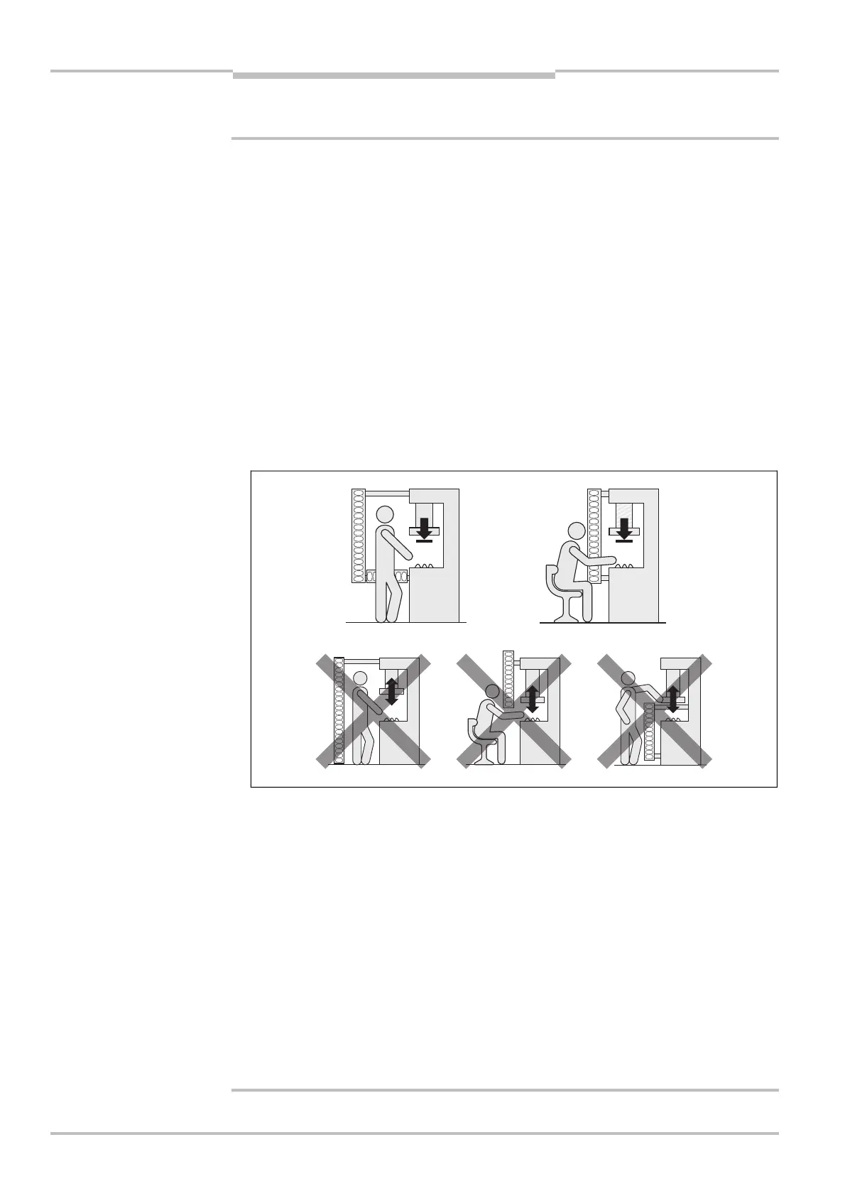 below, above or behind the safety light curtain and that the light curtain cannot be