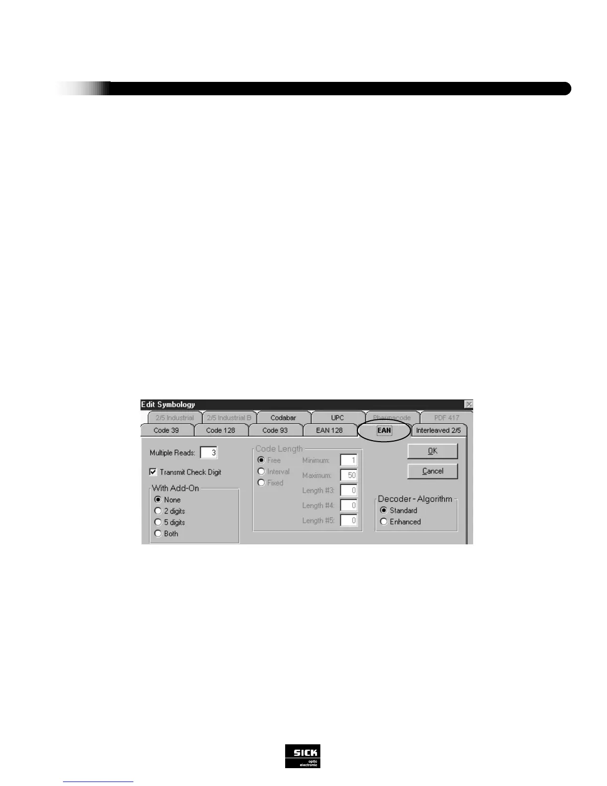 The add-on is an additional bar code of two or five digits that follows the 8 or 13 digits of the EAN. Selectable commands are: