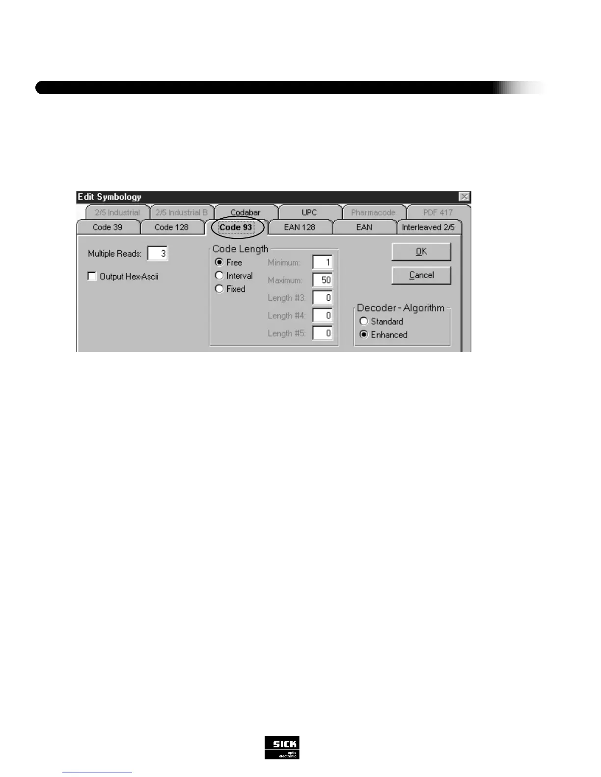 “interval” - User may enter a range of lengths within which the scanner will read the codes. Valid Values 1 to 49.