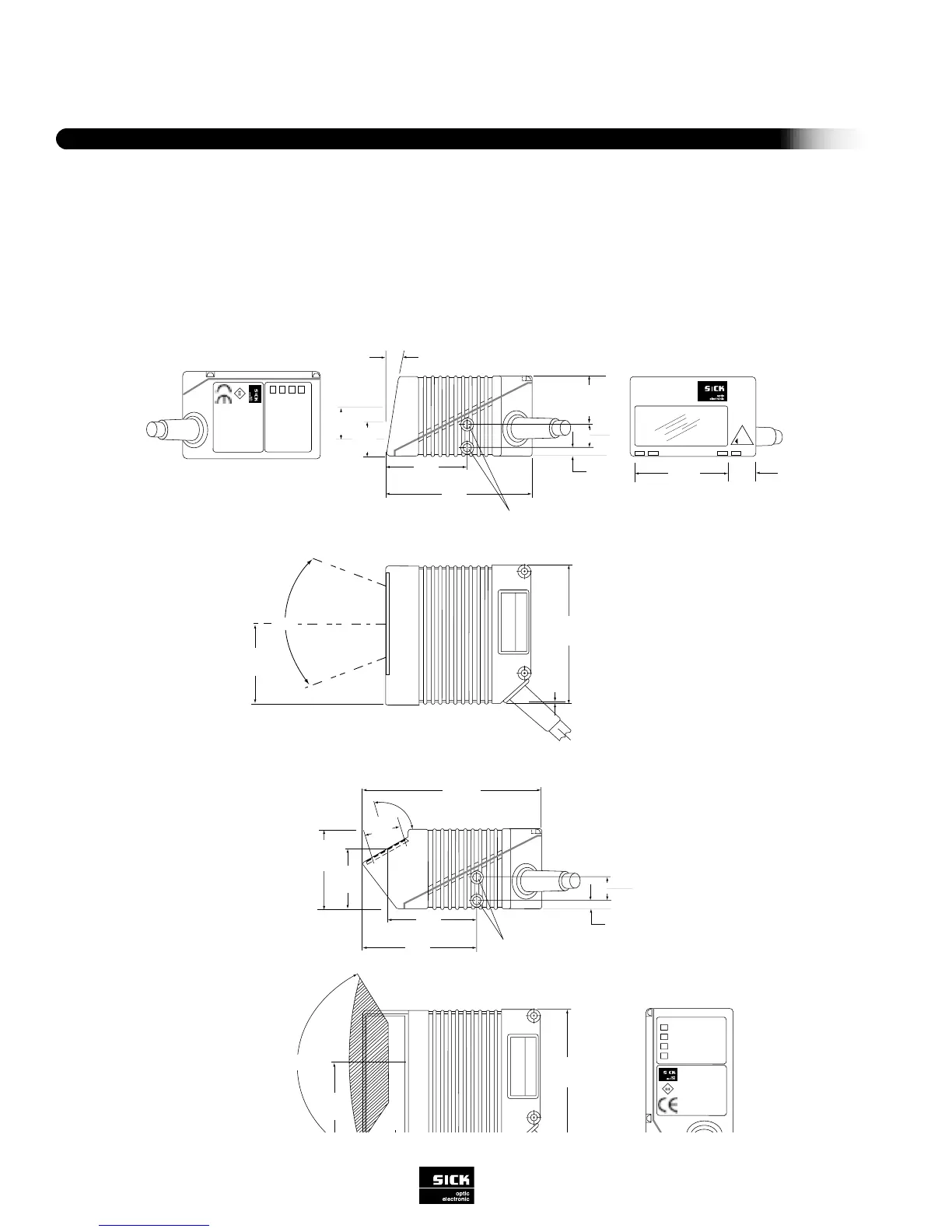 SICK CLV 410 - CLV 410412 Side Scanning End Scanning Dimensions