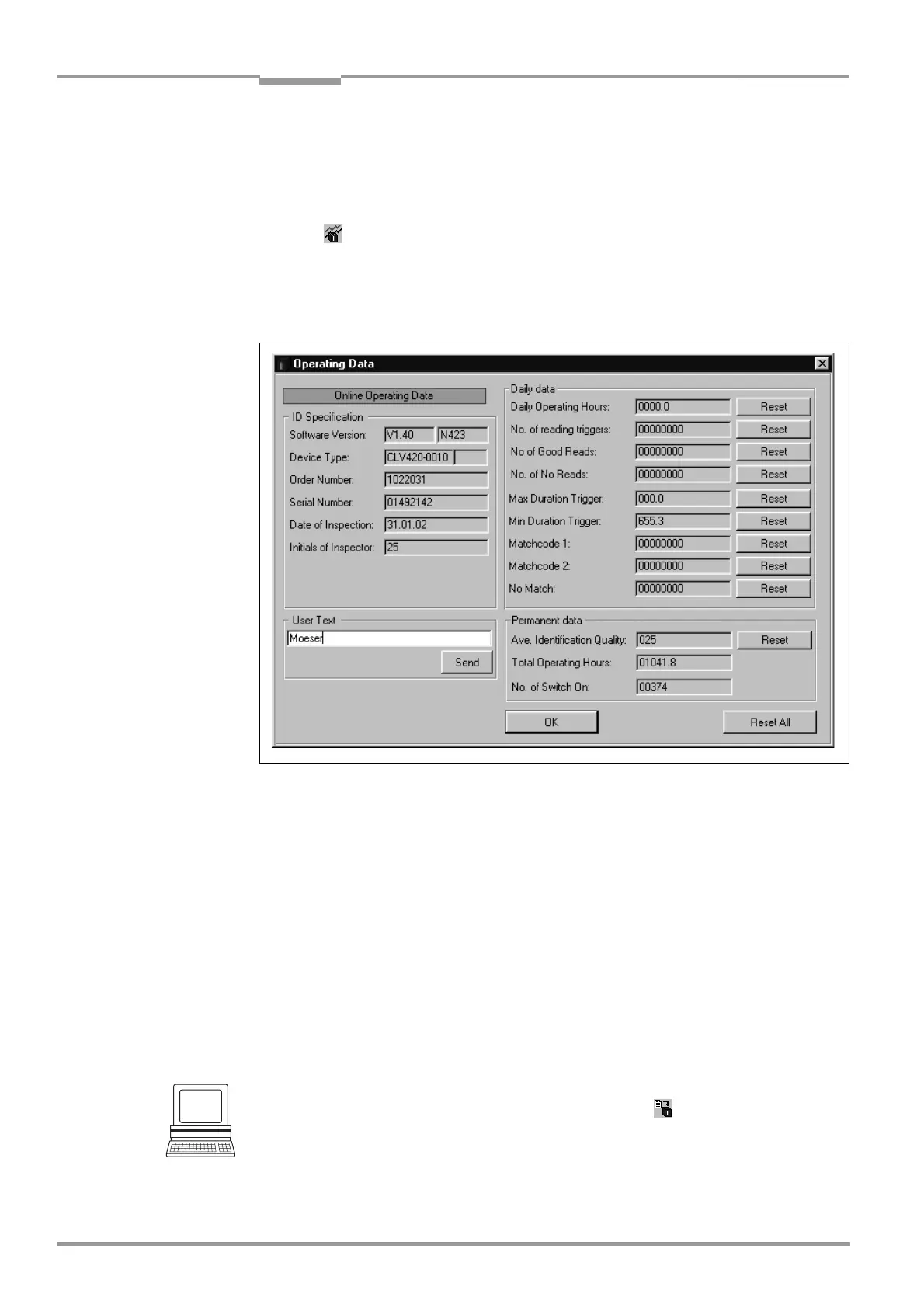 6.5.5 Displaying and editing operating data