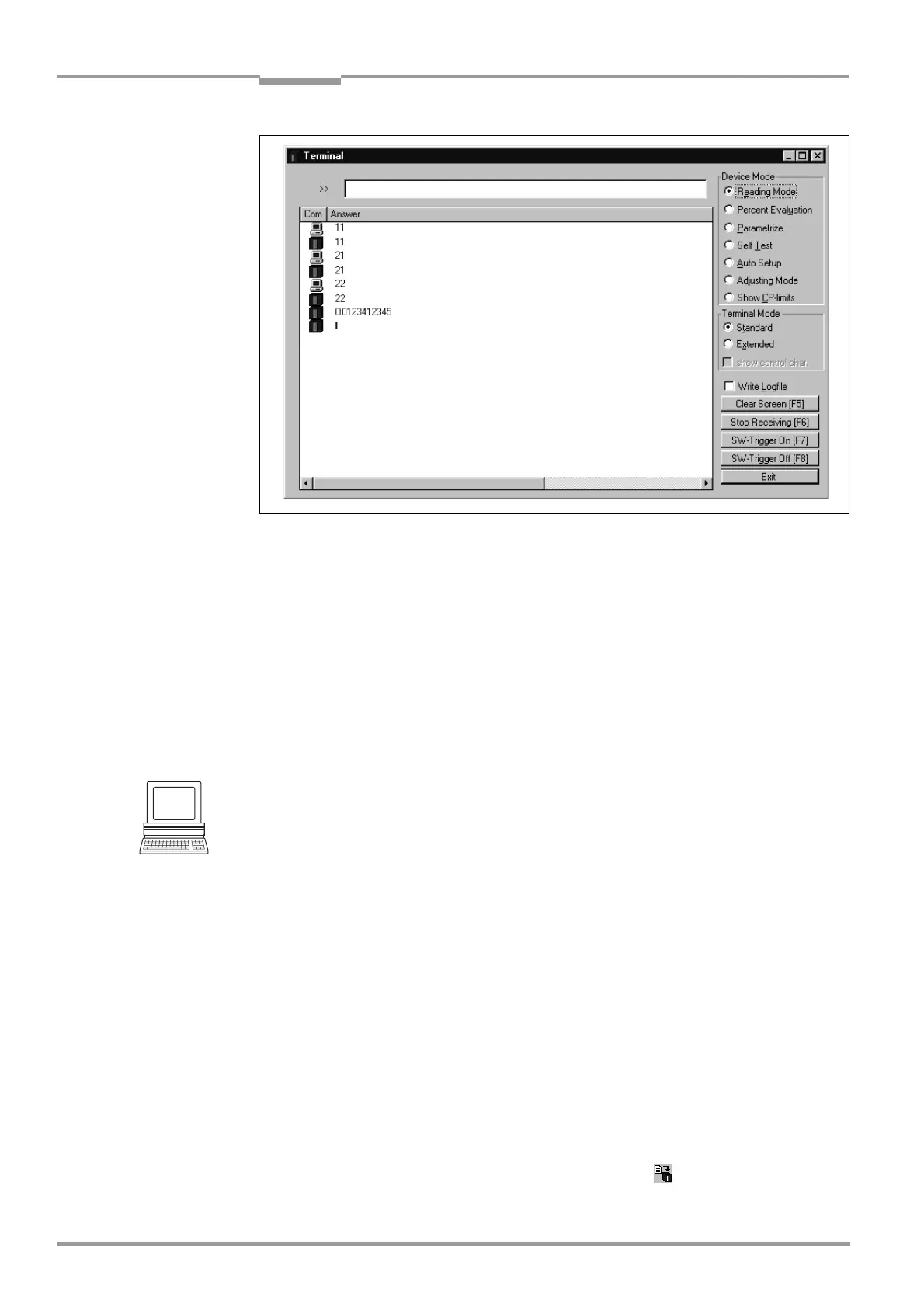 Fig. 6-9: CLV Setup: output of the reading result of the host interface in the terminal emulator at