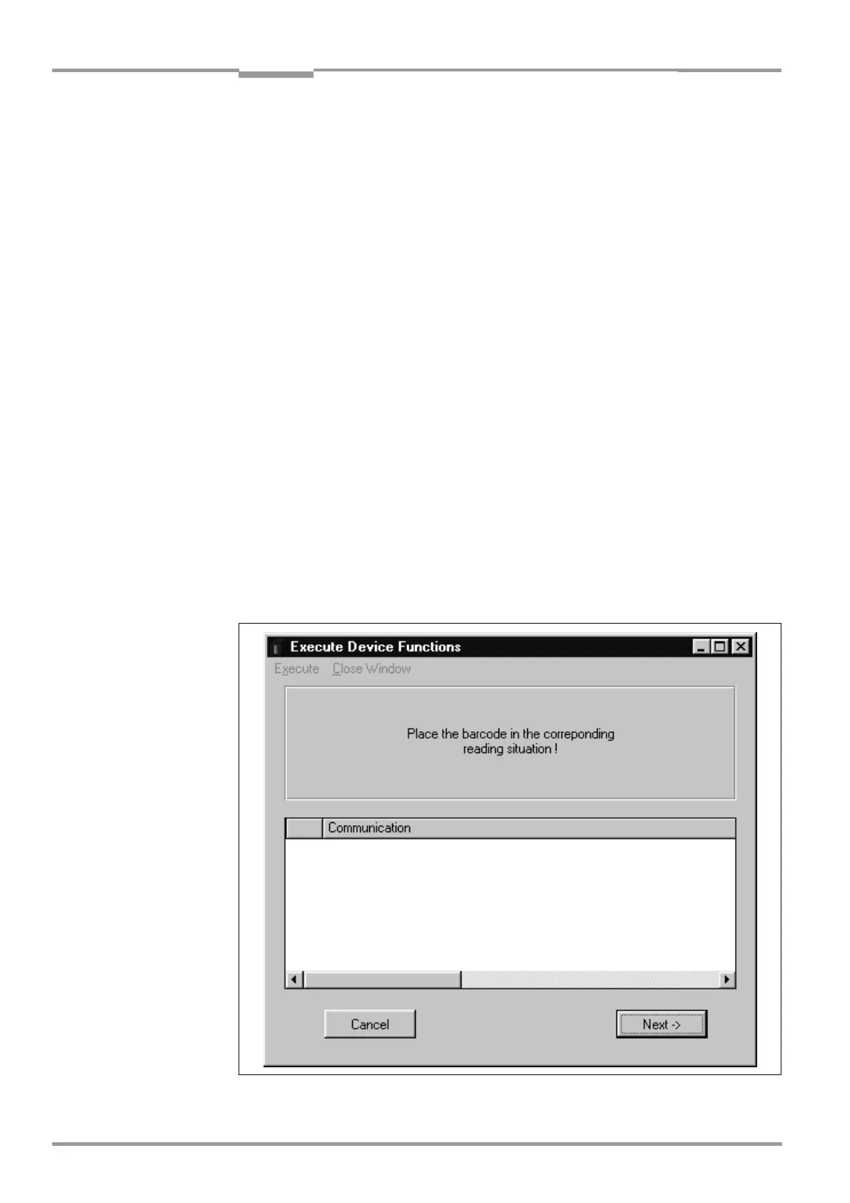 In the menu bar, select the desired function from CLV 42X, DEVICE FUNCTIONS.