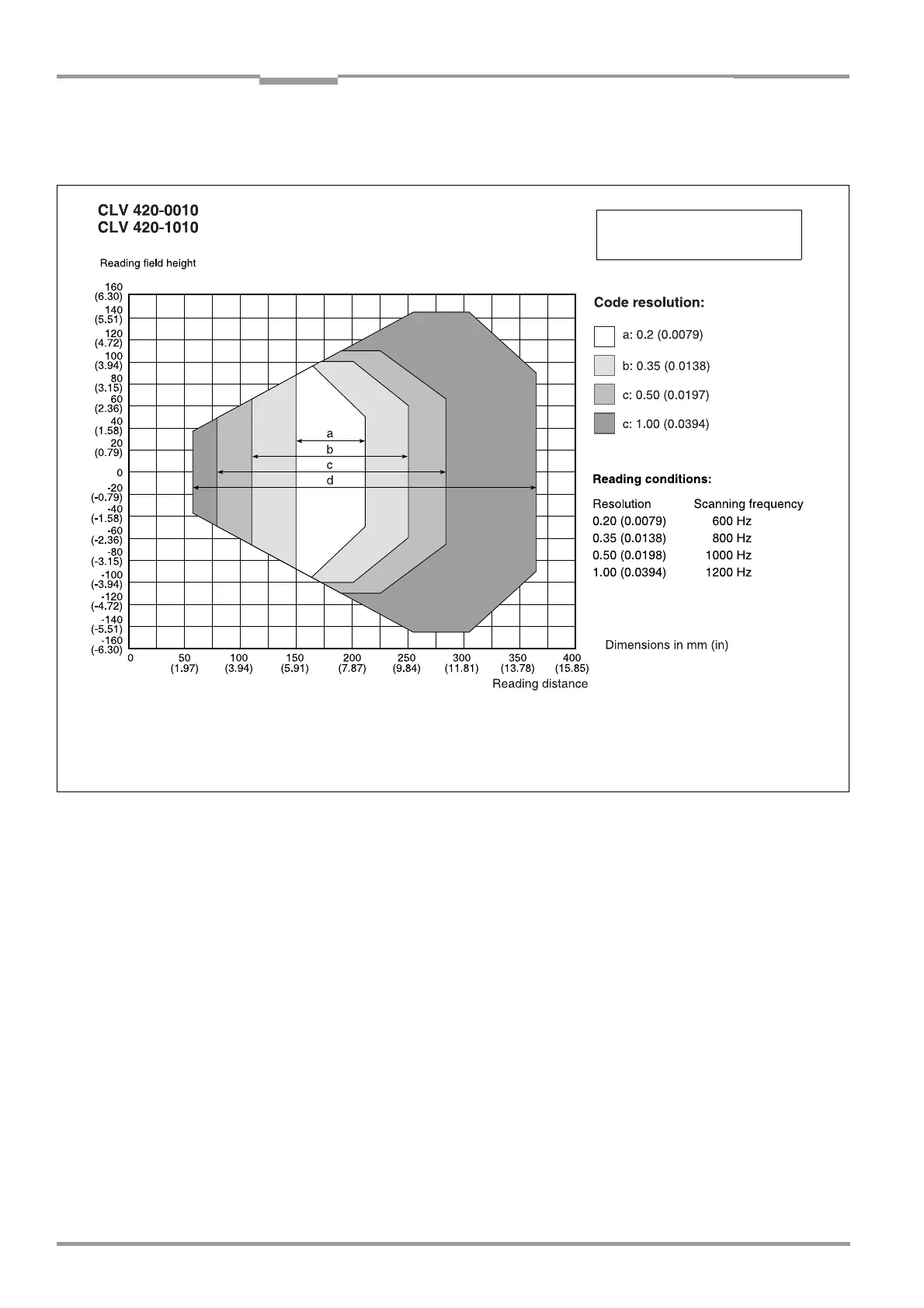 10.2.2 Reading field diagram for CLV 420 line/raster scanner