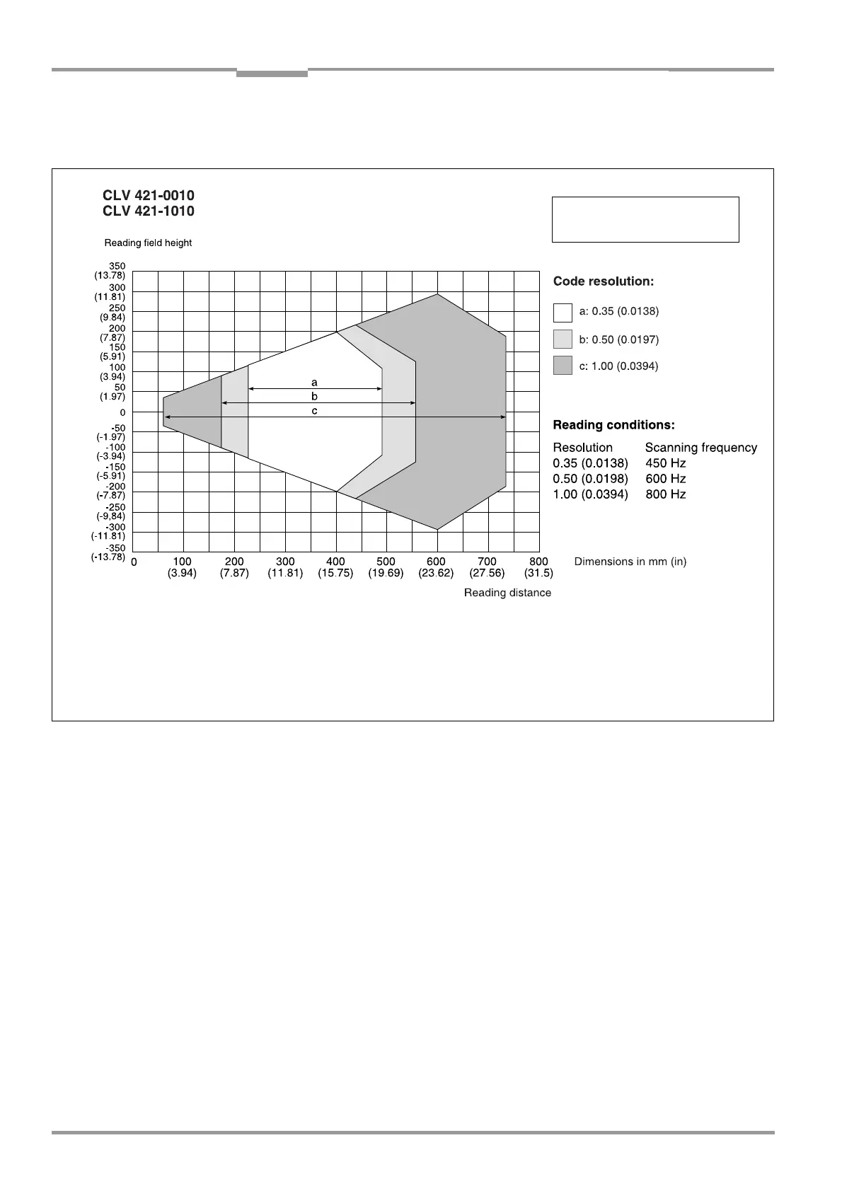 10.2.4 Reading field diagram for CLV 421 line/raster scanner