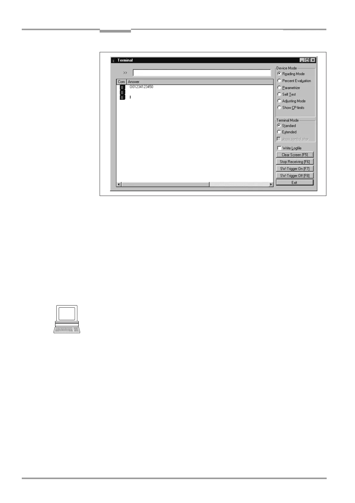 Fig. 6-13: CLV-Setup: Displaying the reading result of the host interface in the Terminal Emulator