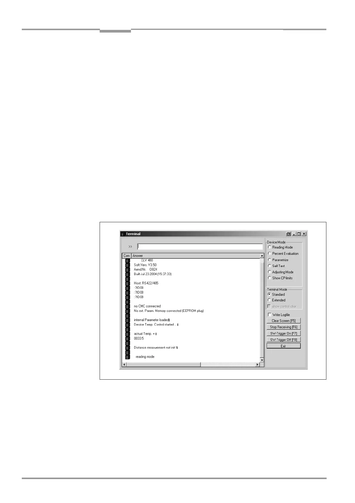 Fig. 6-16: CLV-Setup: Displaying the system messages in the Terminal Emulator when starting the