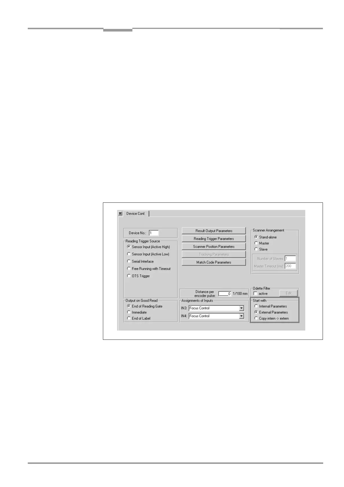 Fig. 10-23 (grey frame). The START WITH EXTERNAL PARAMETERS option is selected by default.