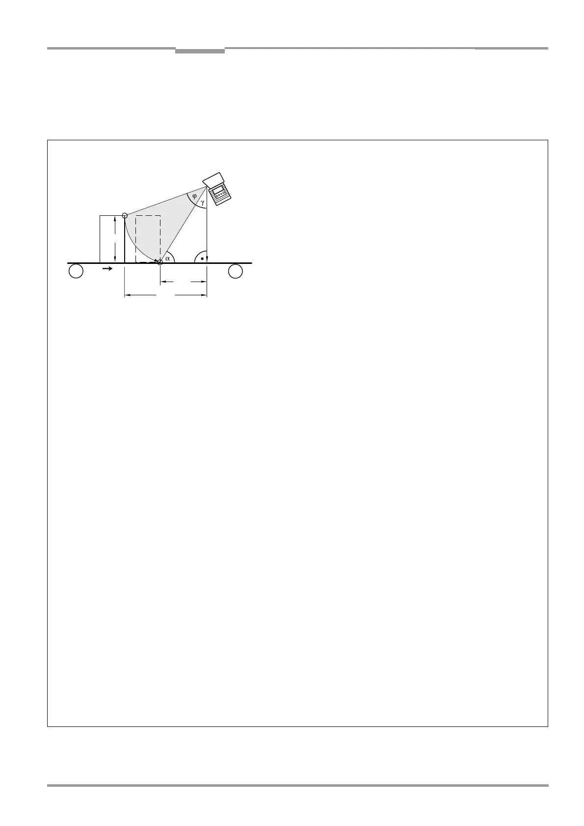 Fig. 10-32: One-Shot: Line scanner with oscillating mirror: calculating the number of scans for fence-type bar code positioning