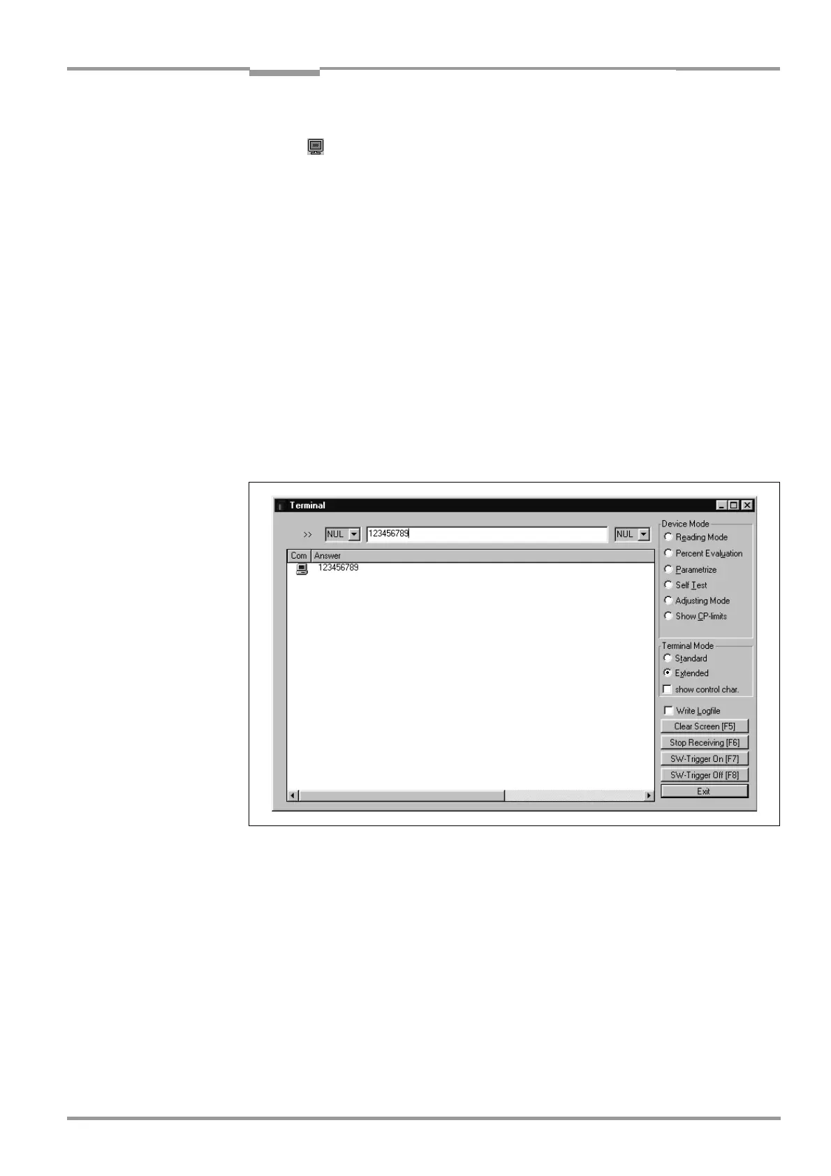 CLV-Setup sends the character string to the CLV and deletes the entry in the text field.