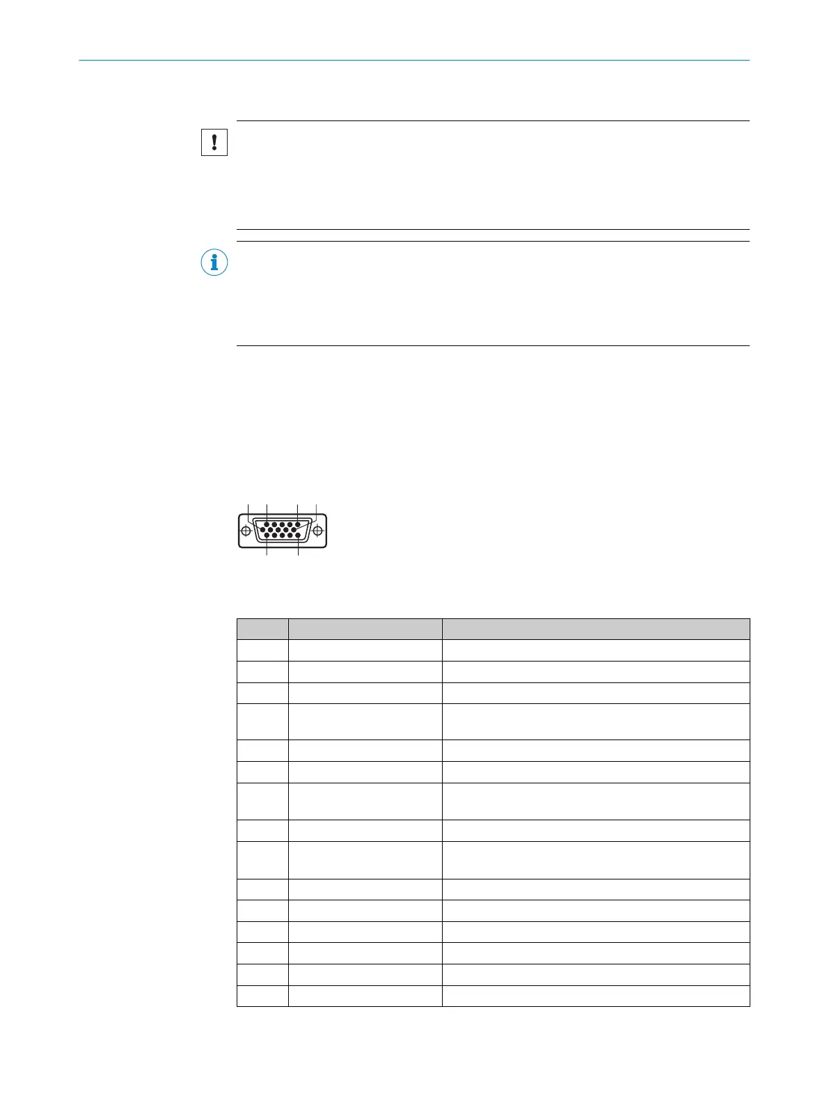 Table 5: Standard version: Pin assignment on 15-pin D-Sub-HD male cable connector
