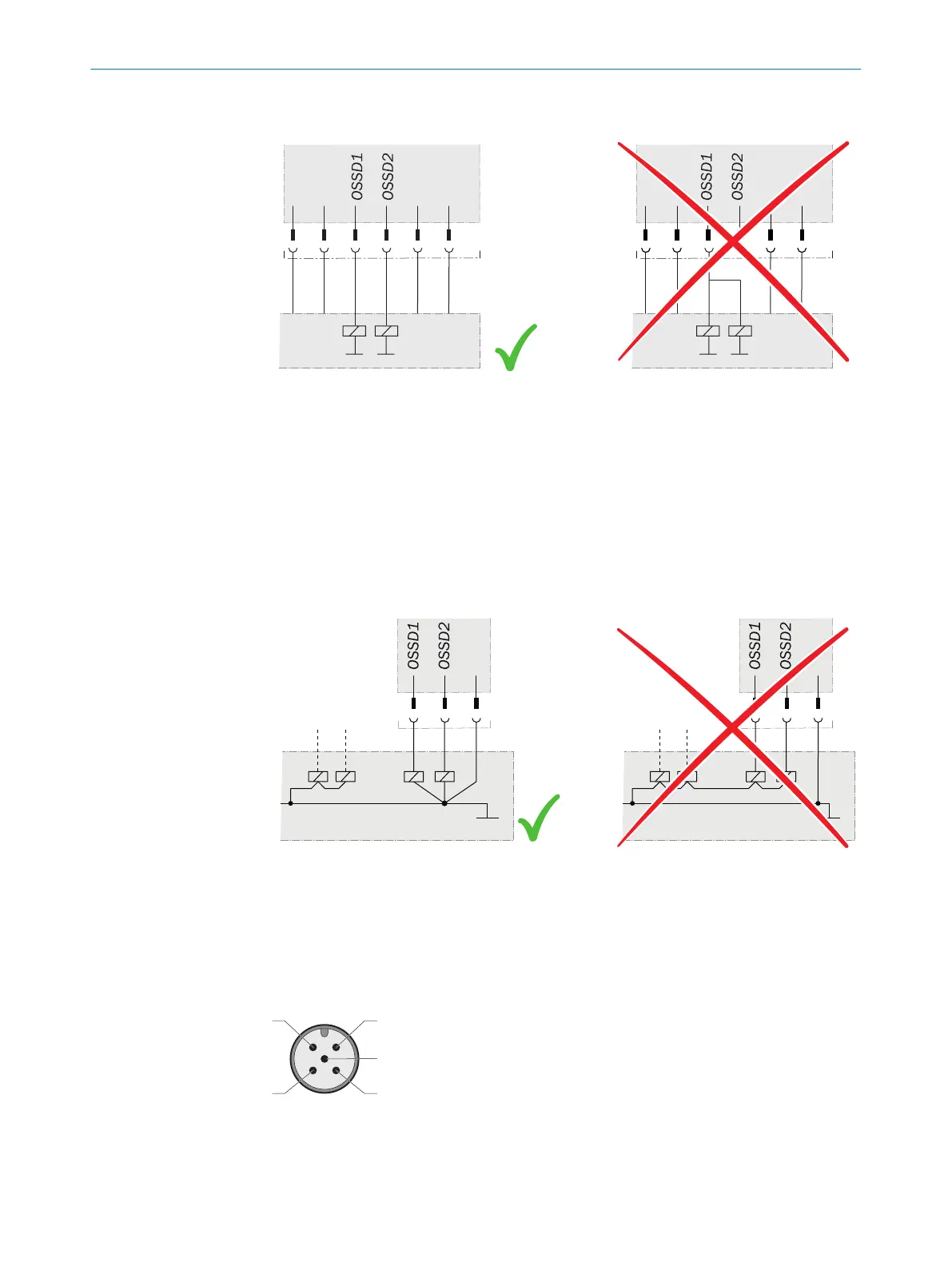 Figure 20: Dual-channel and isolated connection of OSSD1 and OSSD2