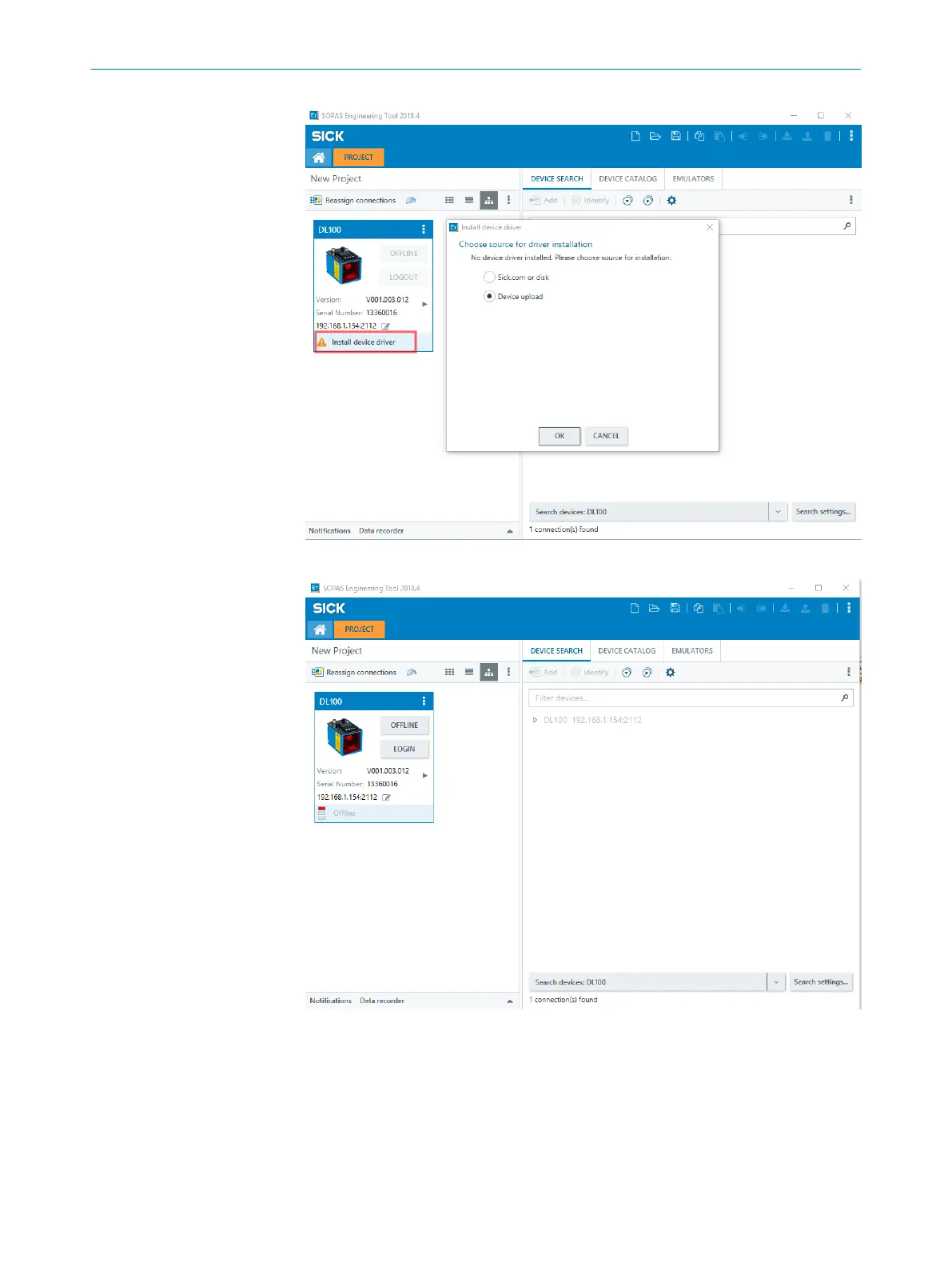 Firmware update and update of the device in the SOPAS project are complete.