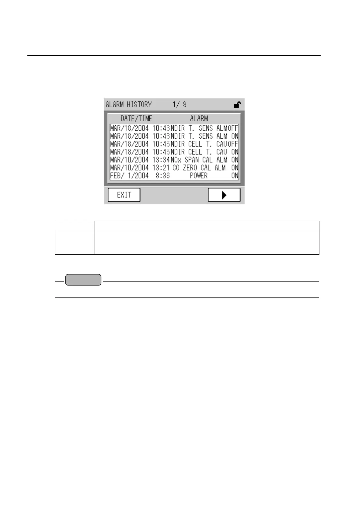 screen will display the ALARM HISTORY screen. In this screen, the alarm history can be
