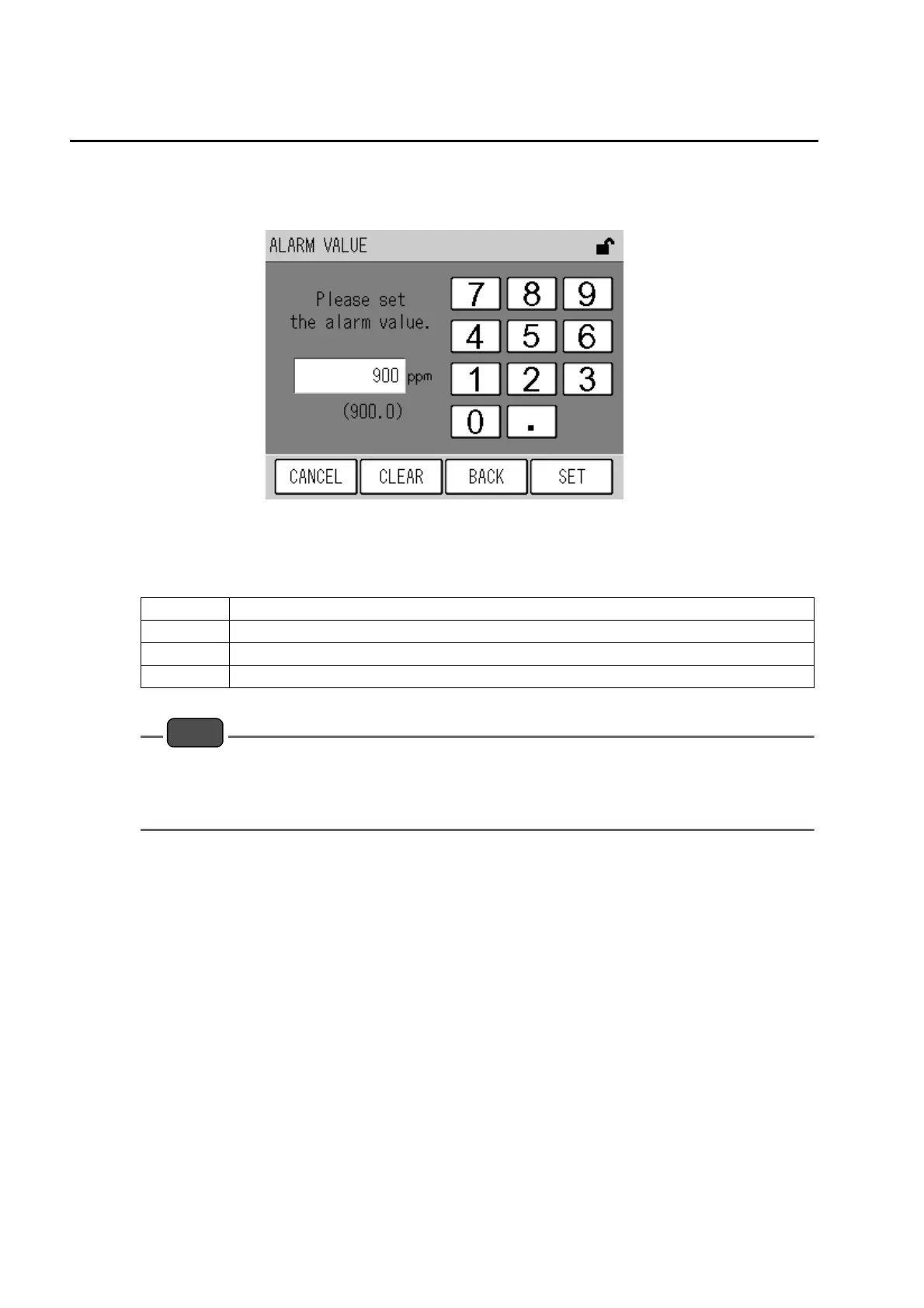 ALARM VALUE screen.