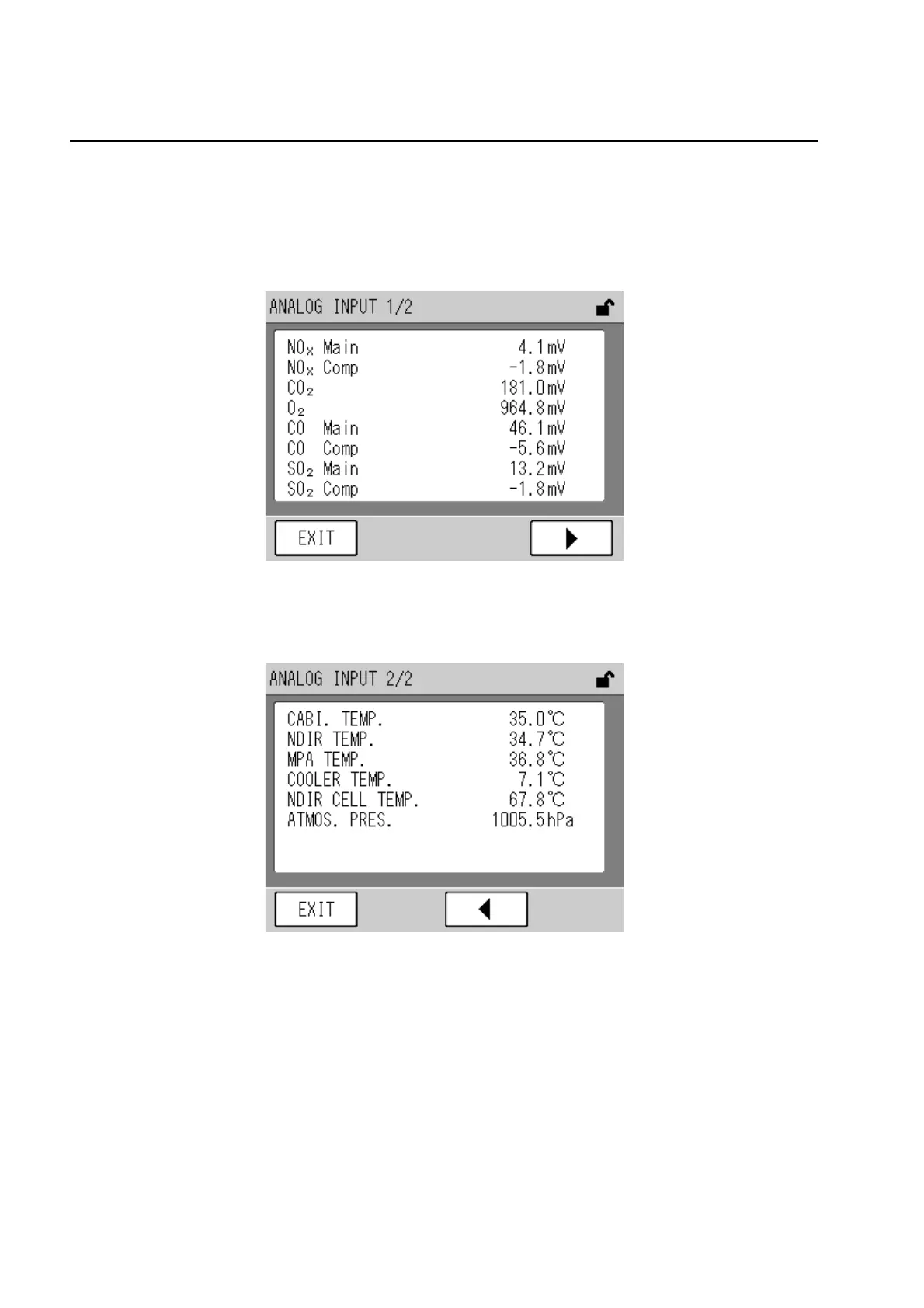 Pressing the [ANALOG INPUT] button in the MENU 2/5 (MAINTENANCE/DATA menu) screen