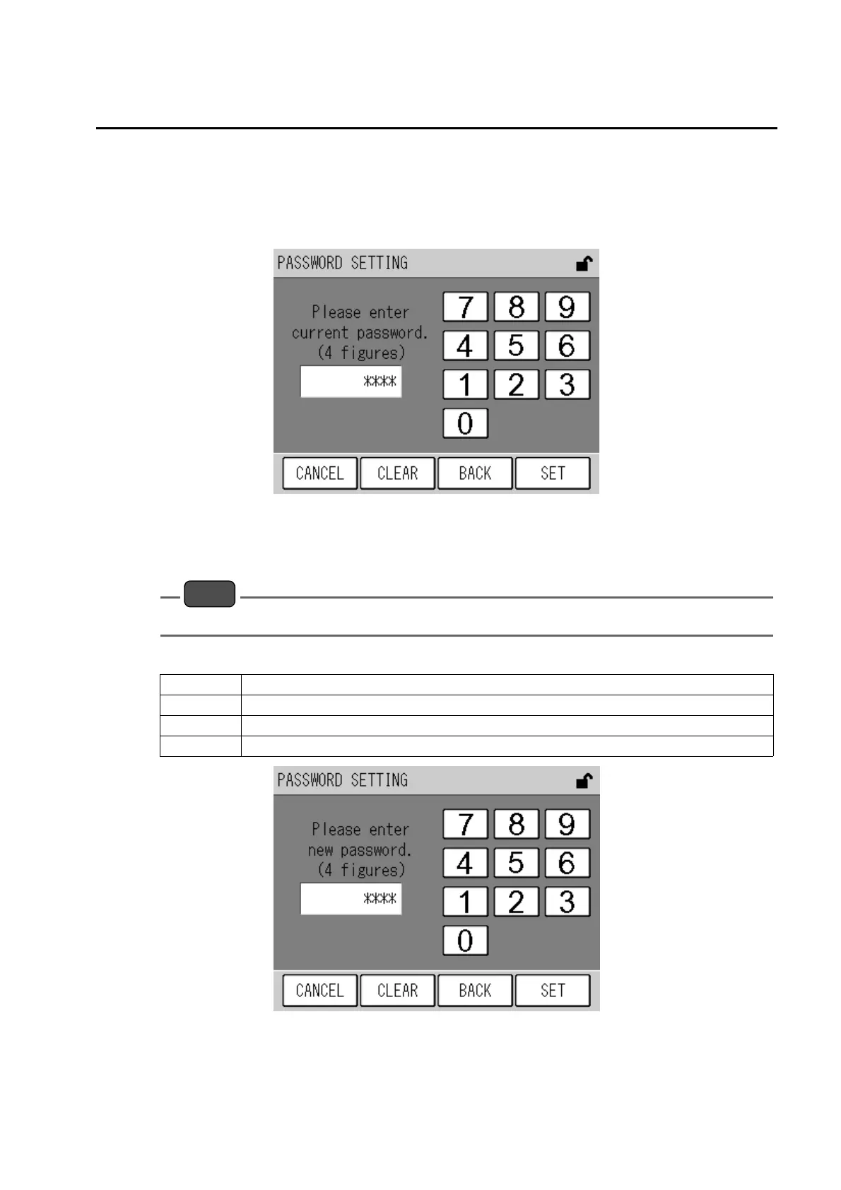 Fig. 44 PASSWORD SETTING screen (new password request)