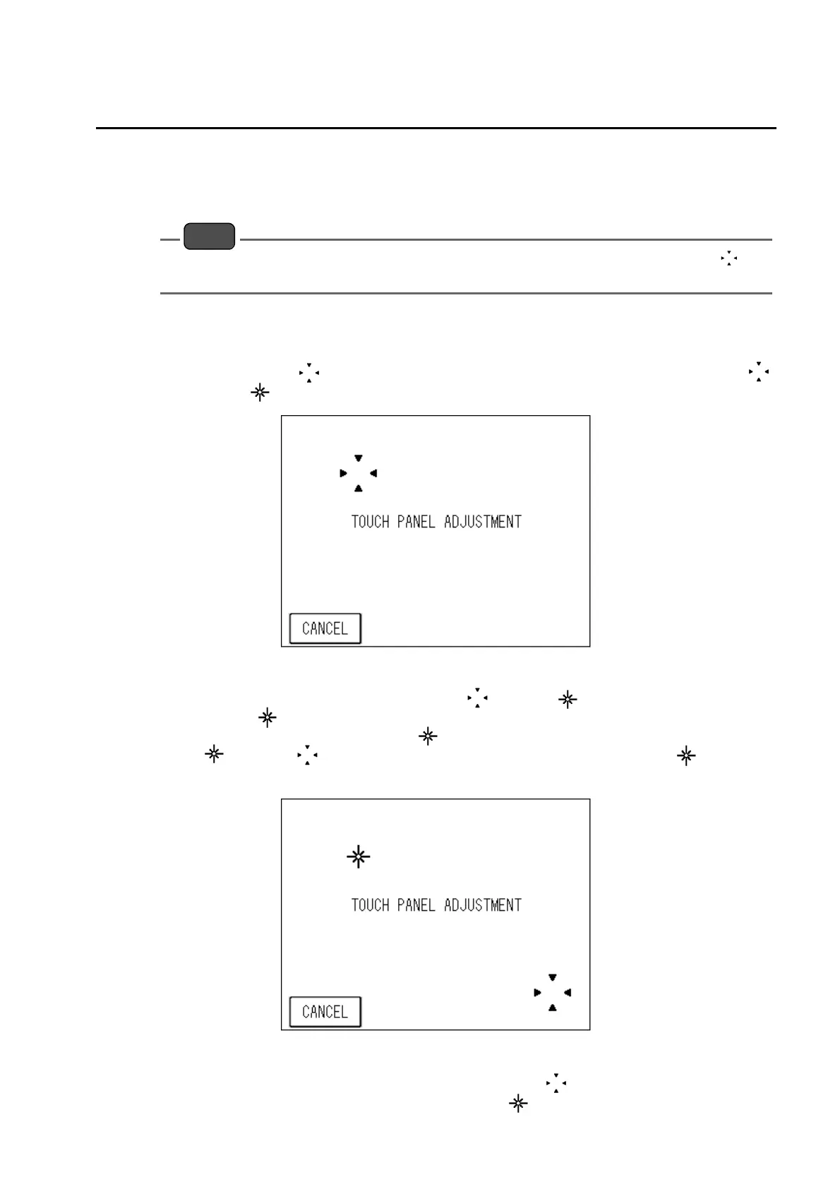 screen will display the TOUCH PANEL ADJUSTMENT screen.
