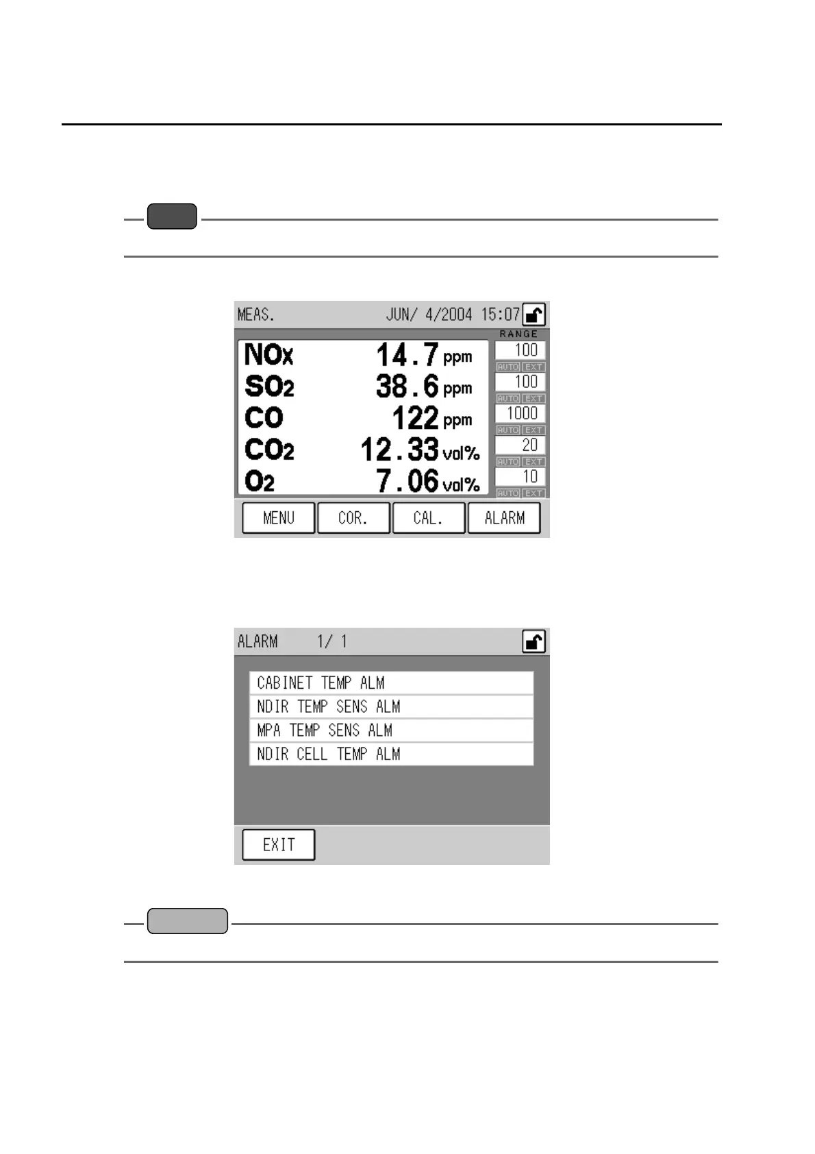 When the [ALARM] key lights up in the upper right of screen, it is possible to check the alarms