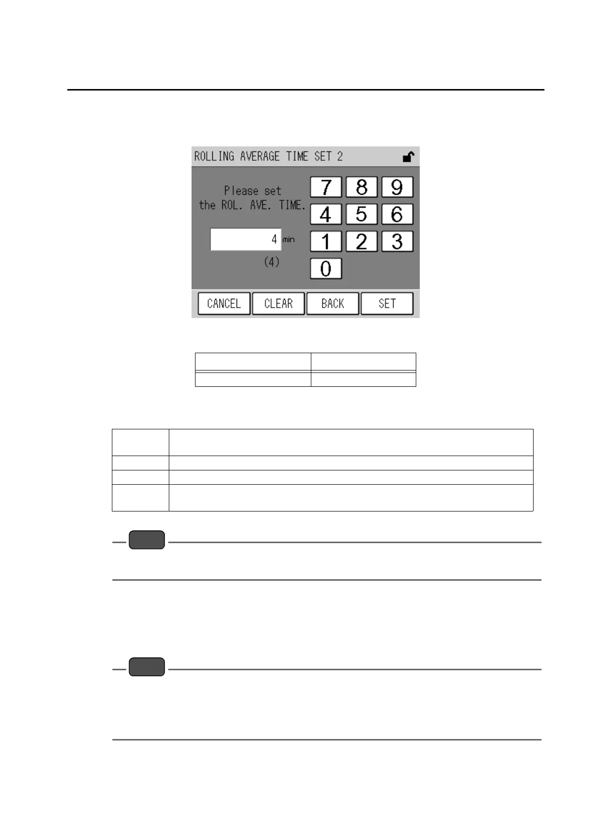Pressing the button at the right of [TIME 2] in the ROLLING AVERAGE TIME SET screen
