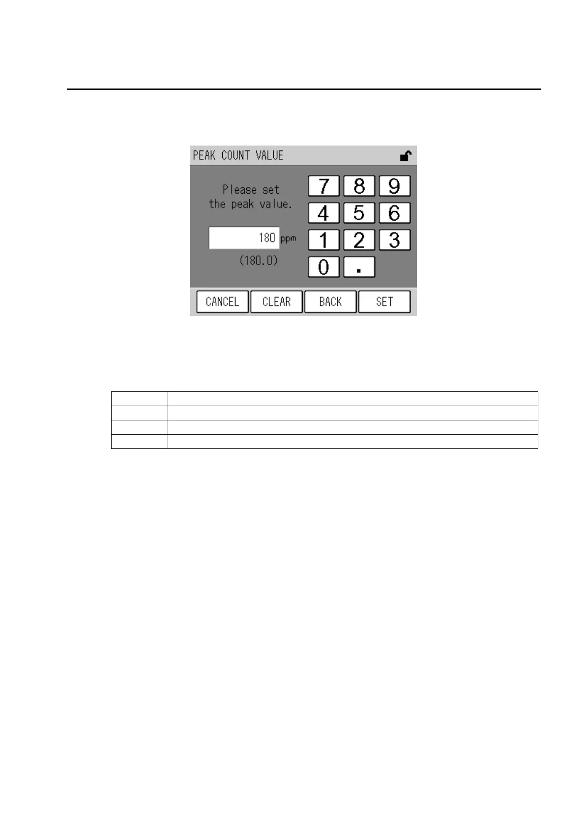 Pressing the [PEAK VALUE] in the CO PEAK COUNT screen displays the PEAK COUNT