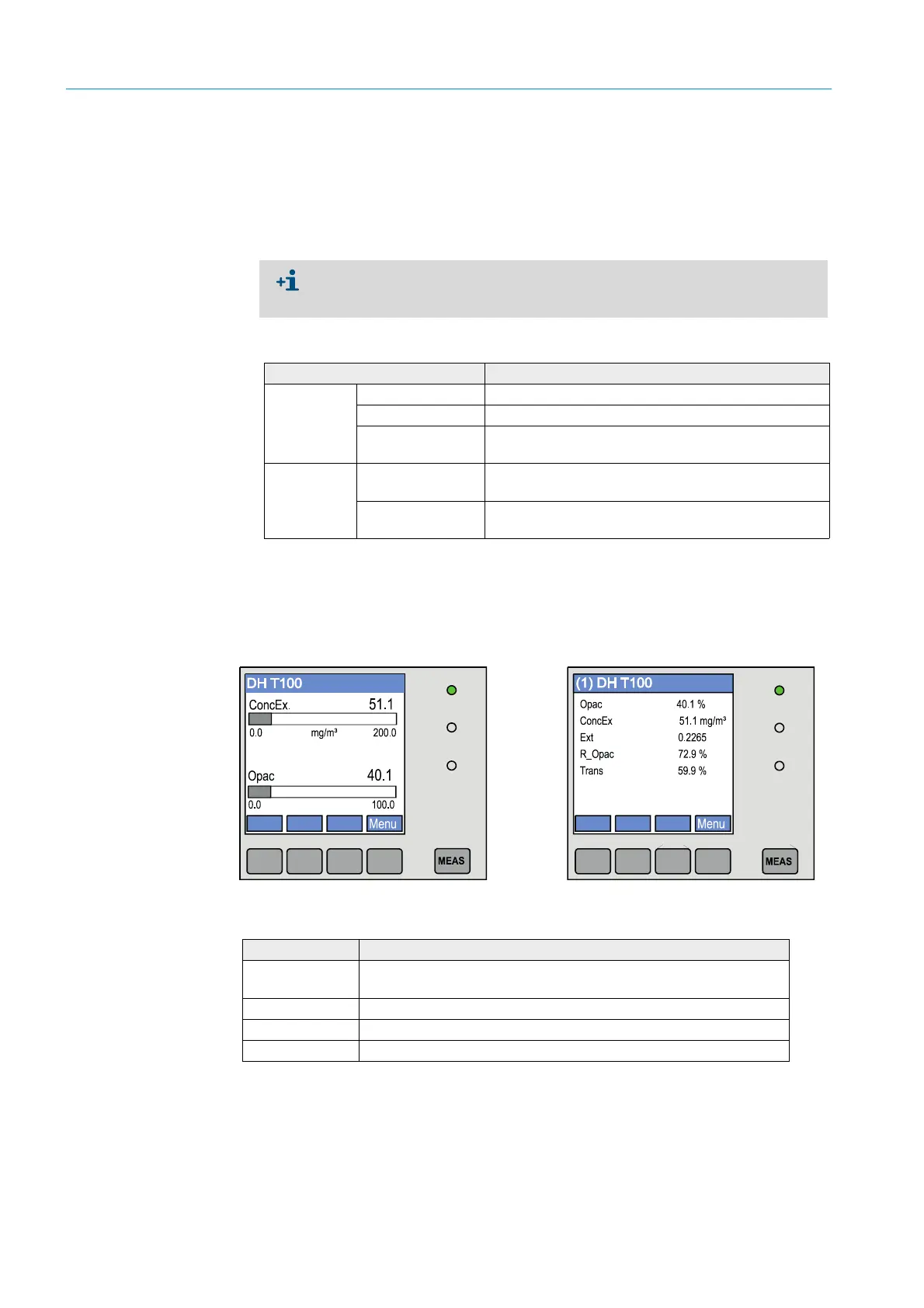 The graphic display shows two main measured values of a connected sender/receiver unit